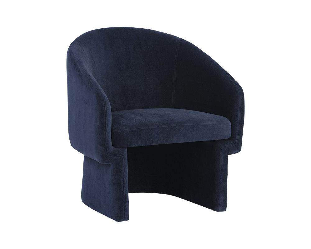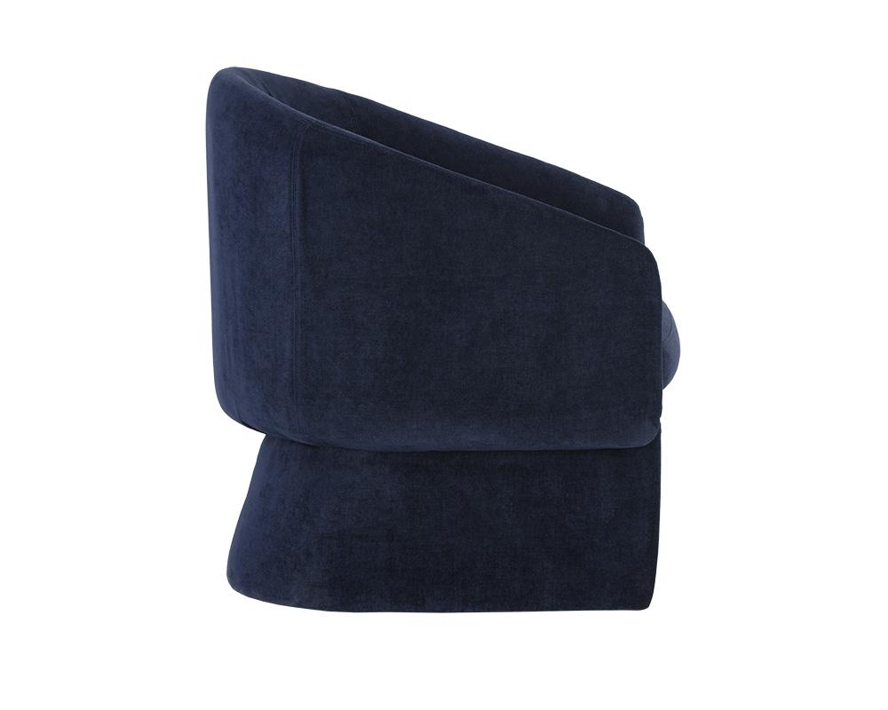 Make a statement with this contemporary lounge chair crafted in Vietnam. Features a modern barrelback seat in danny navy fabric. A perfect addition to living, lounge and lobby environments.
