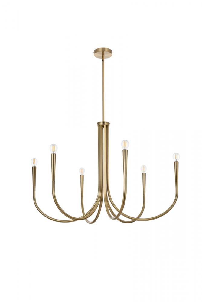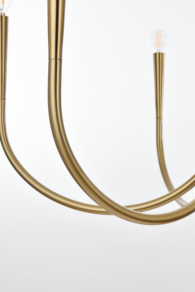 This chandelier stands out with its distinctive and eye-catching design. The smooth, soft thick metal scooped tubular arms gracefully culminate in a sleek conical shape, creating a mesmerizing visual effect that captivates anyone who lays eyes on it.