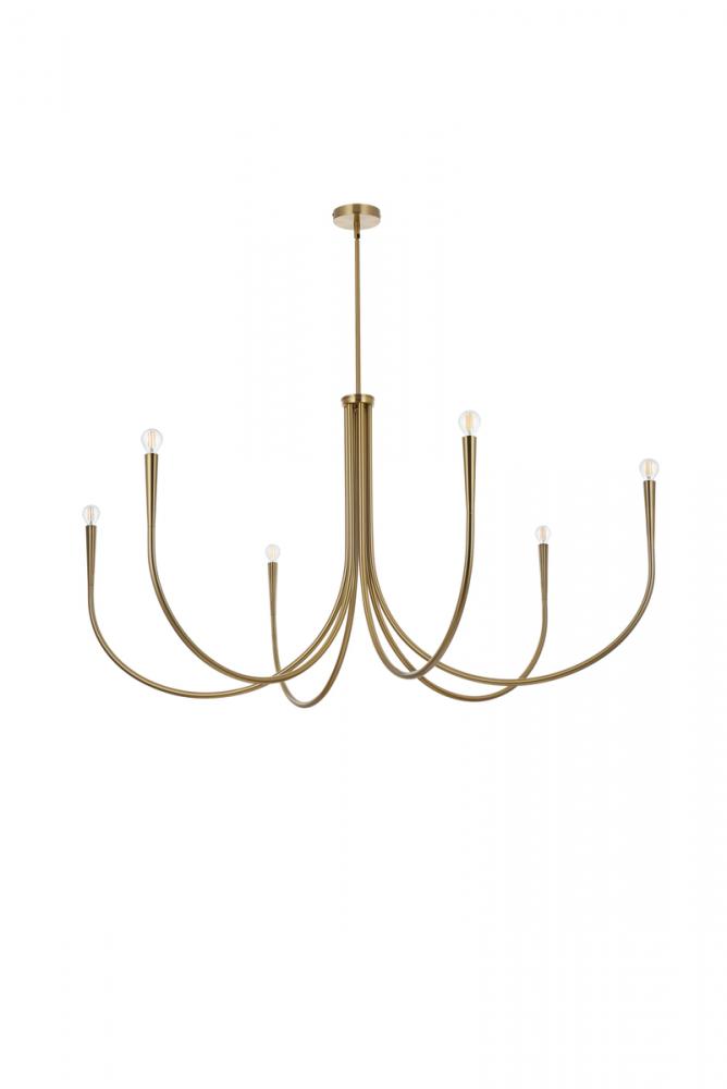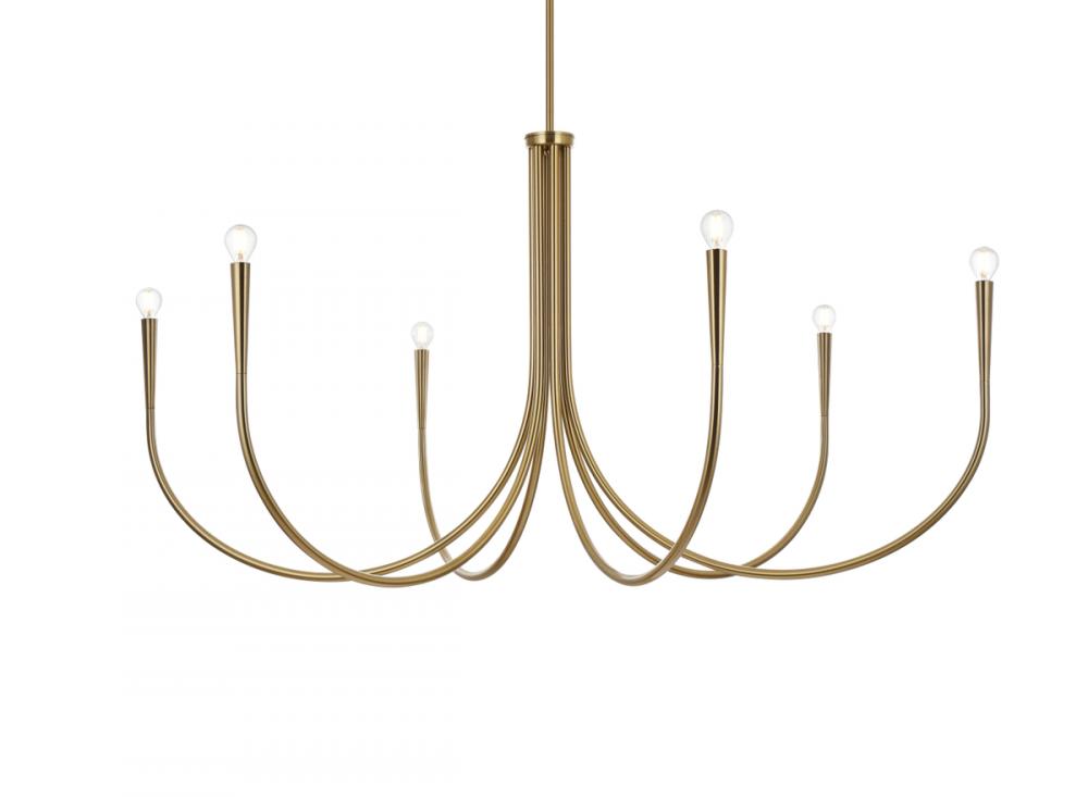 This chandelier stands out with its distinctive and eye-catching design. The smooth, soft thick metal scooped tubular arms gracefully culminate in a sleek conical shape, creating a mesmerizing visual effect that captivates anyone who lays eyes on it.