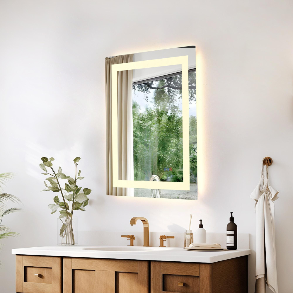 This dimmable LED mirror seamlessly blends elegance and functionality, with touch controls for effortless customization and a sleek, modern design.