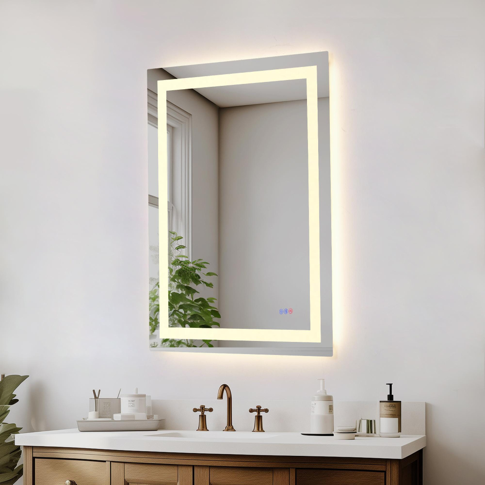 This dimmable LED mirror seamlessly blends elegance and functionality, with touch controls for effortless customization and a sleek, modern design.