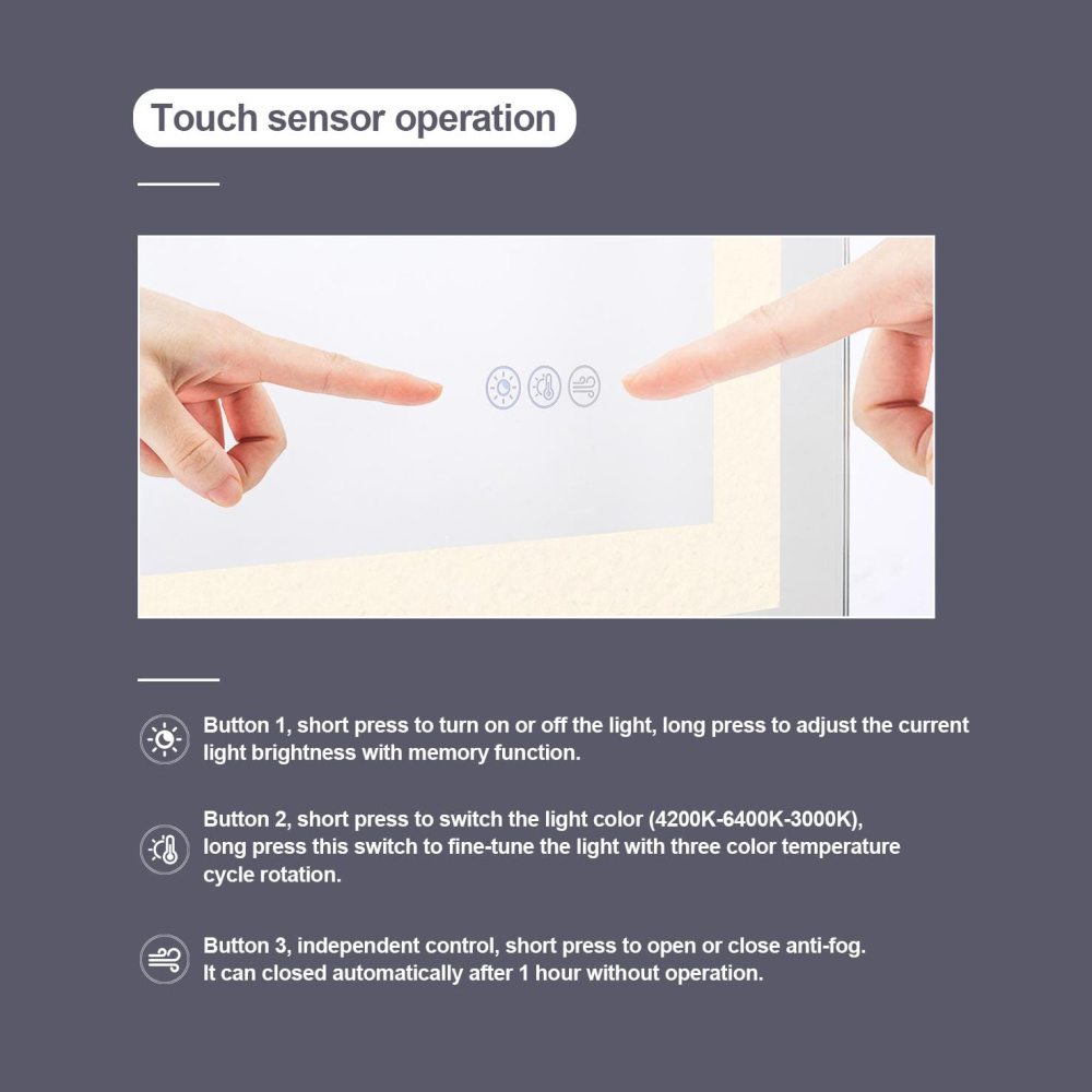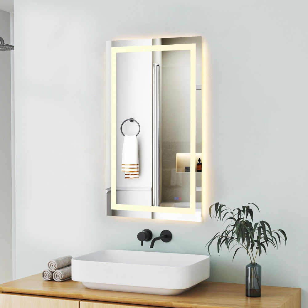 This dimmable LED mirror seamlessly blends elegance and functionality, with touch controls for effortless customization and a sleek, modern design.