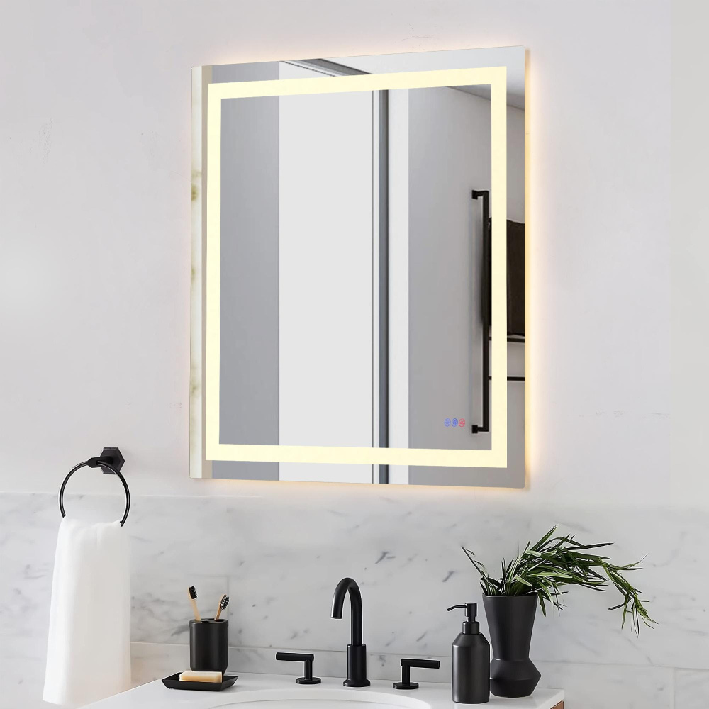 This dimmable LED mirror seamlessly blends elegance and functionality, with touch controls for effortless customization and a sleek, modern design.