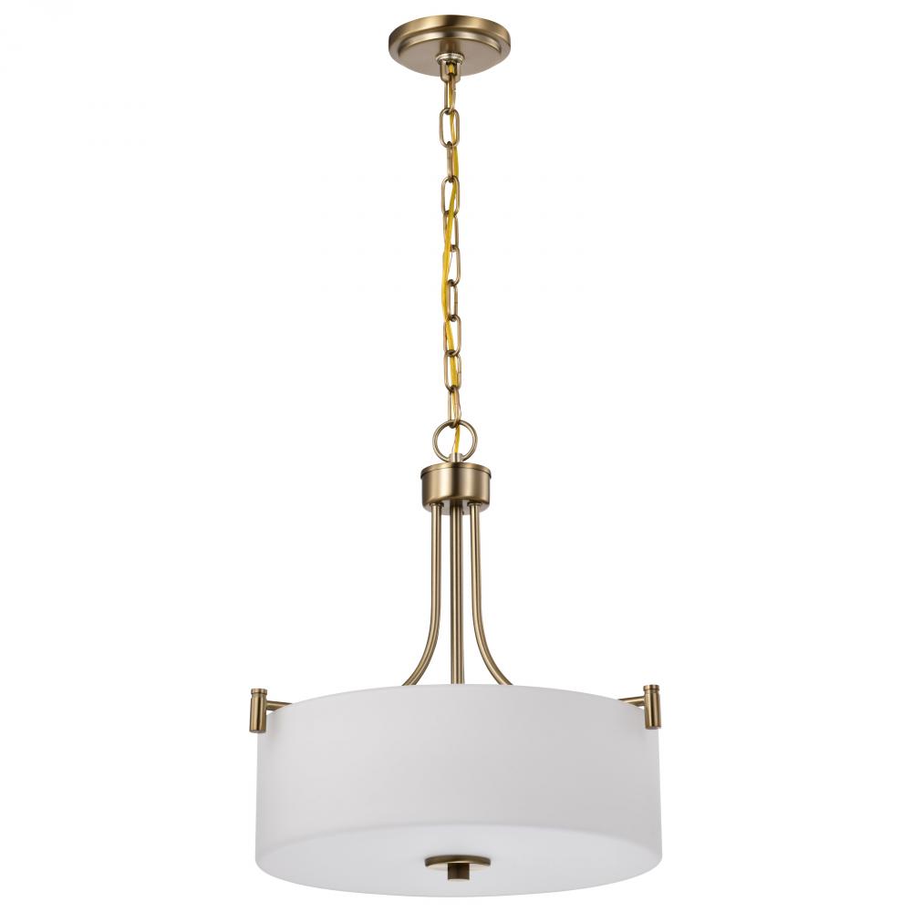 Seamlessly blending transitional design with contemporary accents, the Liam 60-8204 three light pendant exudes understated elegance. A sophisticated burnished brass finish, perfectly complements the soft glow of white opal glass. With its broad appeal and
