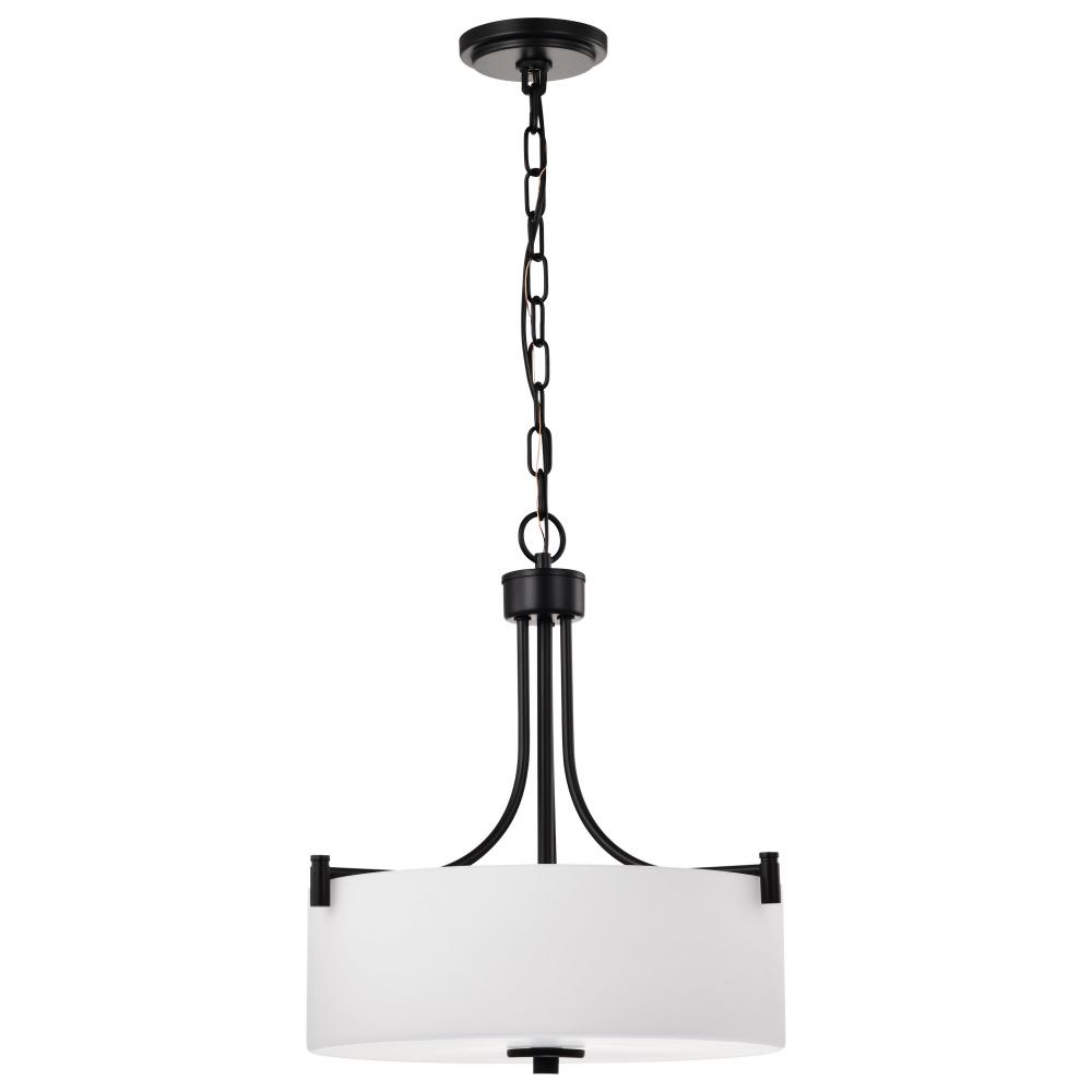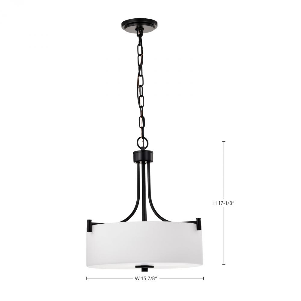Seamlessly blending transitional design with contemporary accents, the Liam 60-8214 three light pendant exudes understated elegance. A sophisticated matte black finish, perfectly complements the soft glow of white opal glass. With its broad appeal and vers