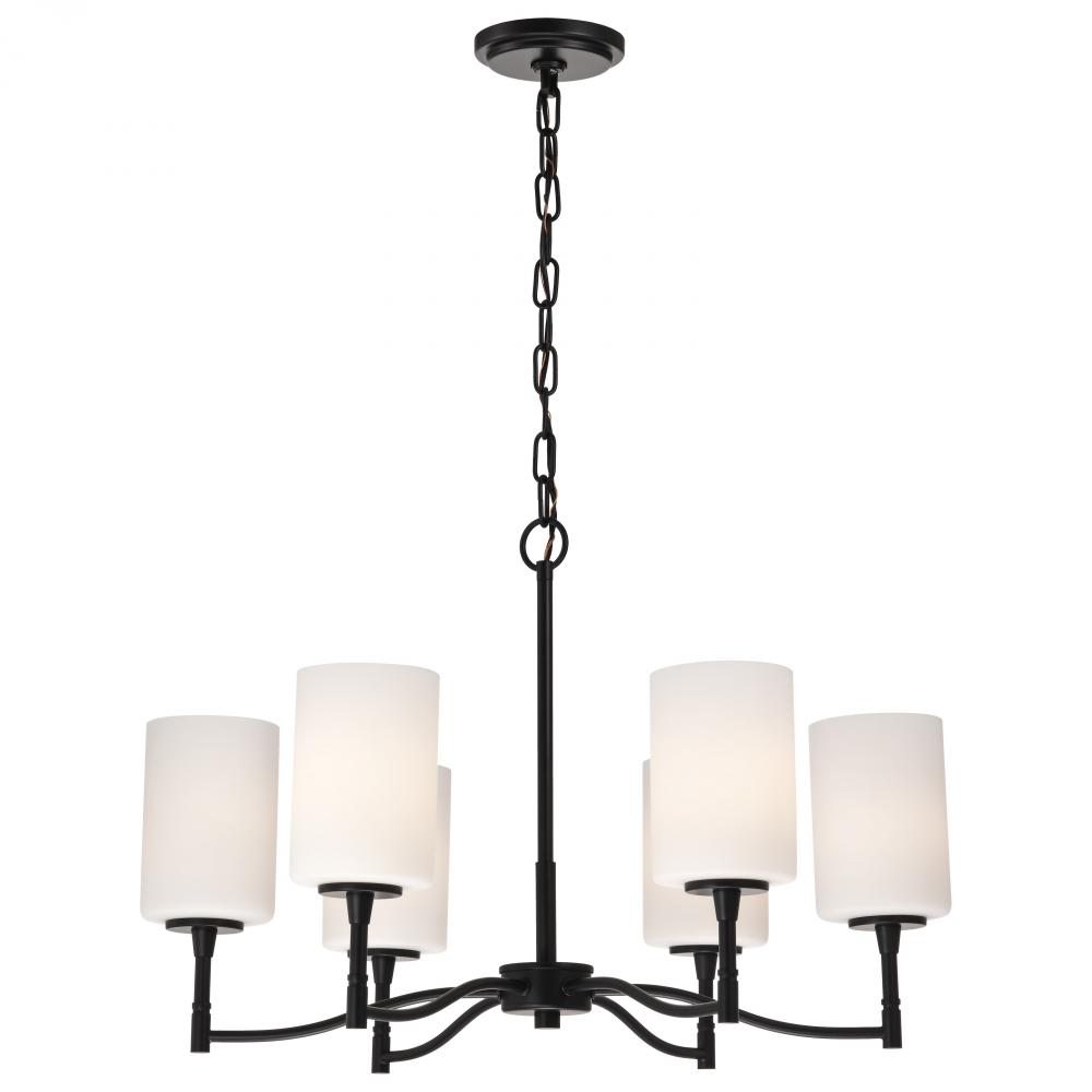 Seamlessly blending transitional design with contemporary accents, the Liam 60-8216 six light chandelier exudes understated elegance. A sophisticated matte black finish, perfectly complements the soft glow of white opal glass. With its broad appeal and ver