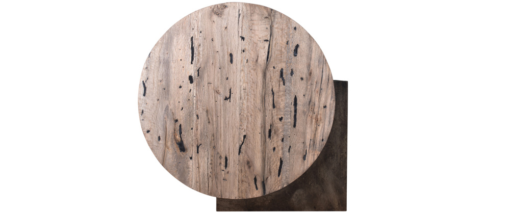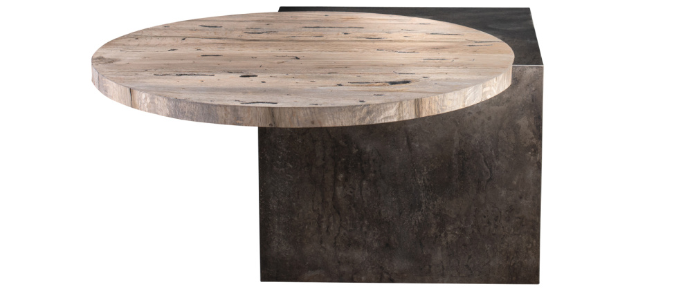 Limbo Coffee Table Small, Abstract metal, with Raw Palografico Wormhole Oak Finish