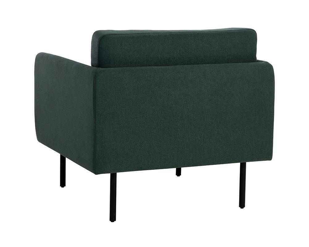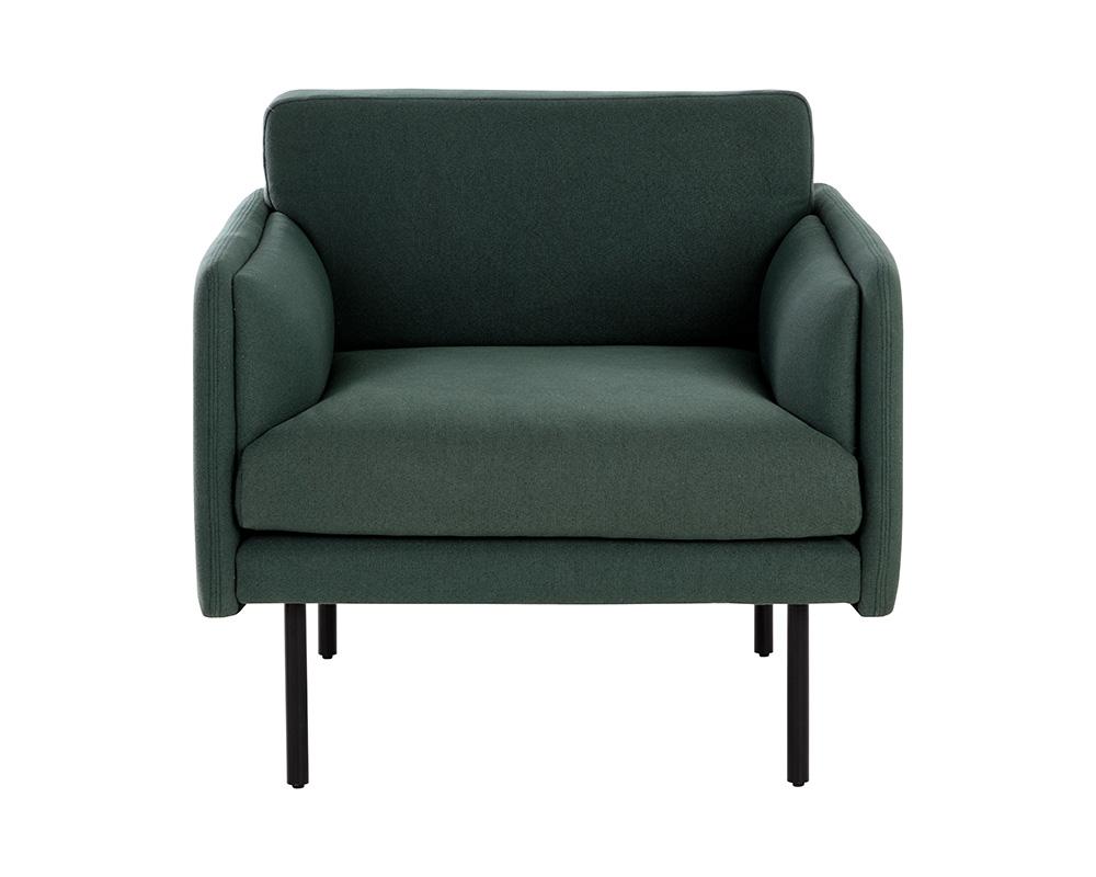 A classic and comfortable armchair that takes inspiration from mid-century designs. Stocked in mina pine and ivory fabrics with generously-cushioned seating. Completed with black metal legs. Coordinating sofa also available.