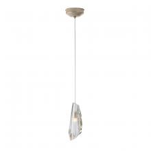 A thick, lustrous jewel of faceted crystal encases the light source within it. The Luma mini pendant is eye-catching opulence that offers a sophisticated beauty even when unlit.