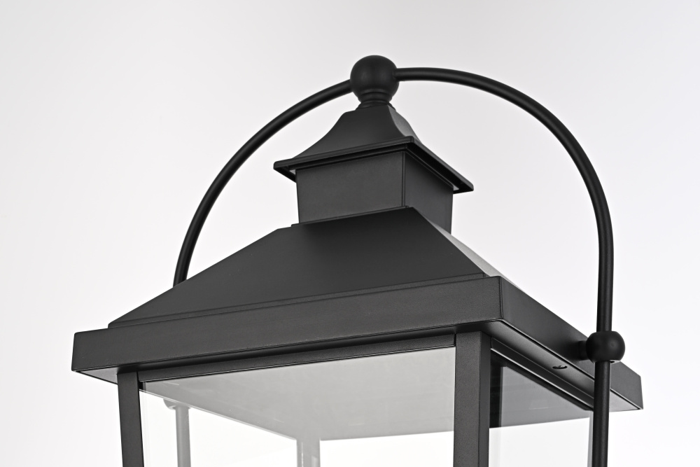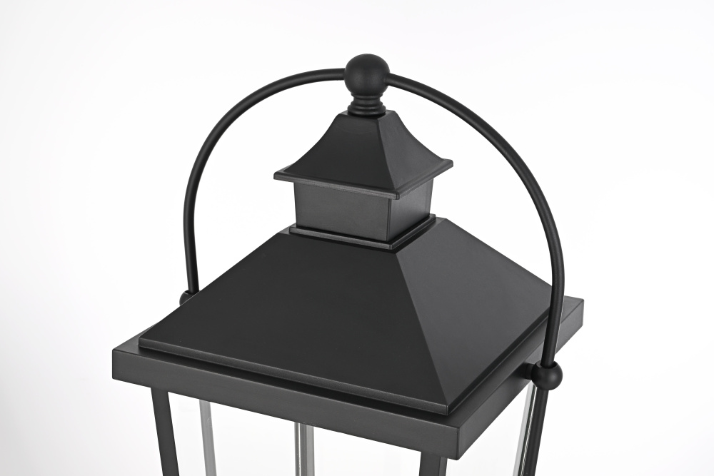 Features a tapered rectangular frame with a pitched roof, reminiscent of classic lanterns, adding a timeless aesthetic to outdoor spaces.