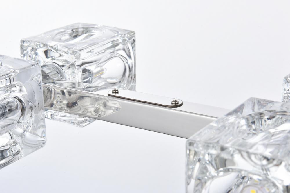 Eight lights project boldly, each boasting a distinctive dimpled square glass for a uniquely dynamic and stylish look.