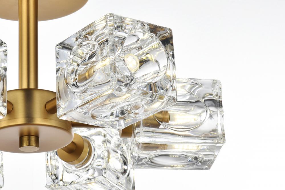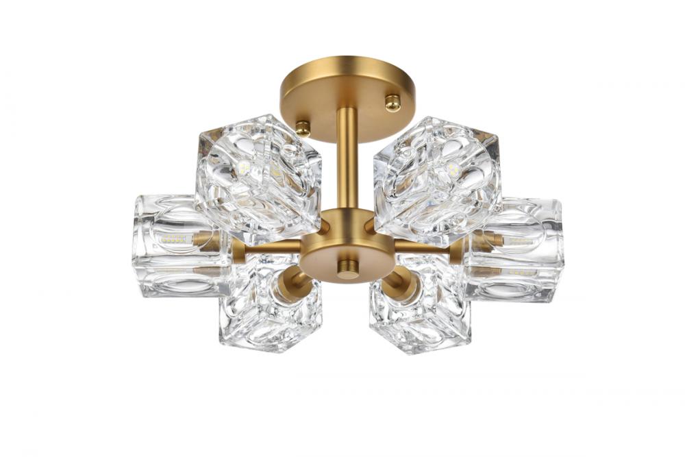 Six lights project boldly, each boasting a distinctive dimpled square glass for a uniquely dynamic and stylish look.
