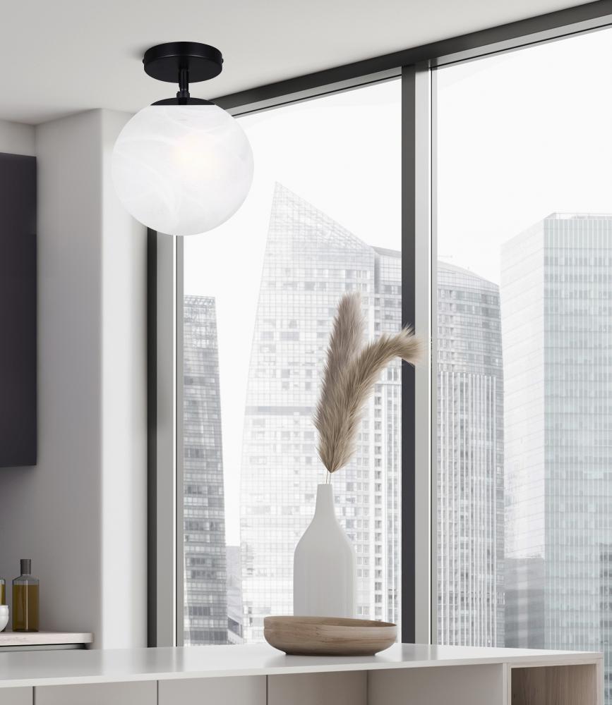 Mackenna, ISF1229A01BK, MBK Color, 1 Lt Semi-Flush, Alabaster Glass, 60W Type A, 9.75inch W x 12.375inch H