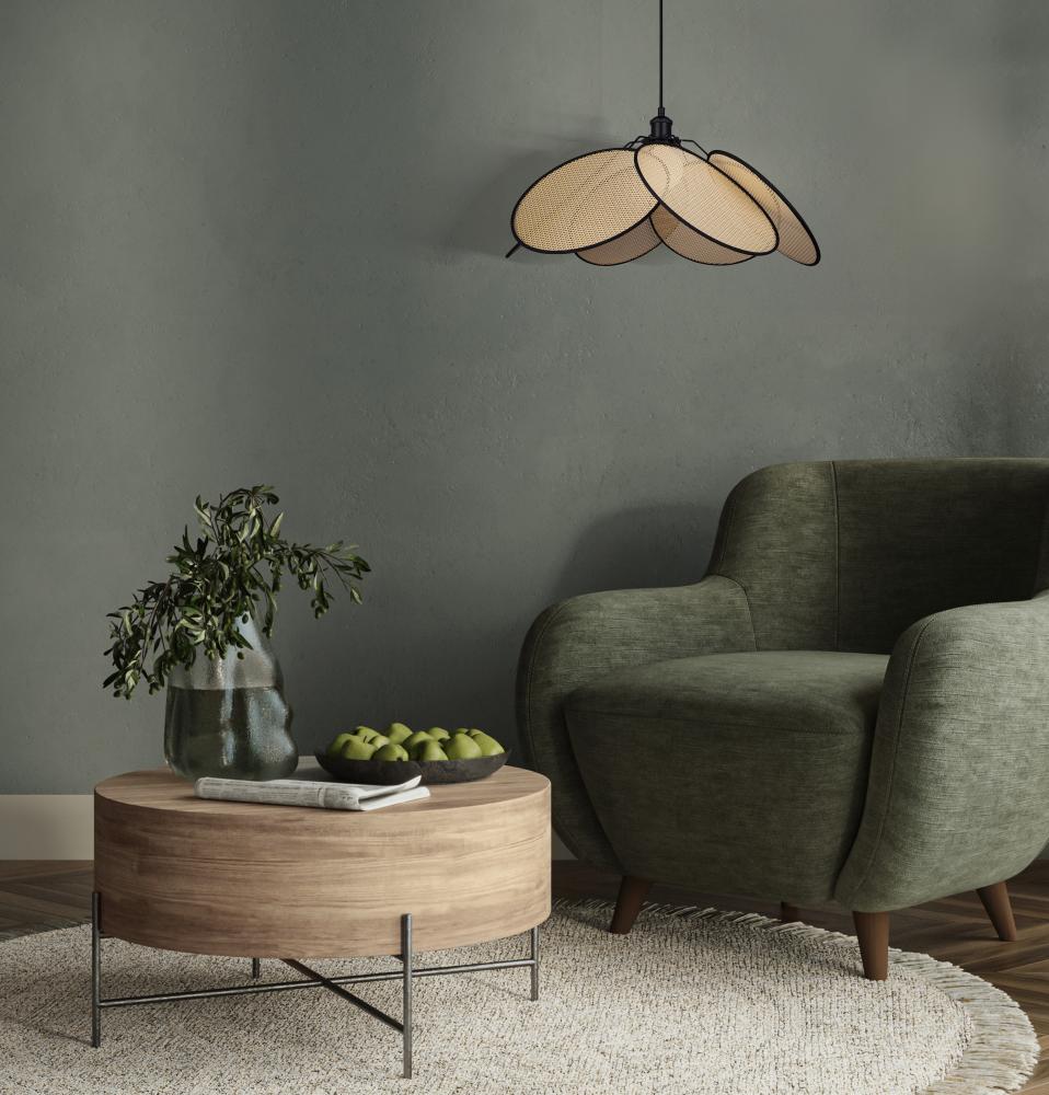 MADISON, IPL2182B01BKP, MBK + Plastic Rattan Color, 1 Lt Cord Pendant, 60W Type G40, 23.6inch W x 12.75 - 61inch H x 23.6inch D