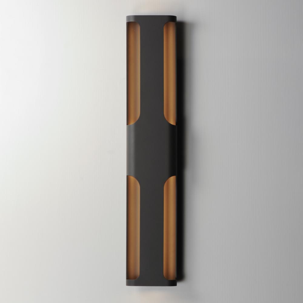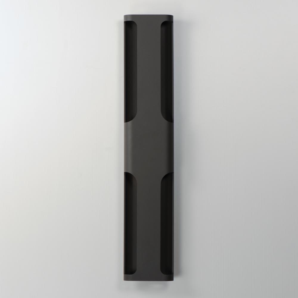 Large aluminum extrusions with indirect lighting highlights cut outs in this architectural outlook. Directed outwards toward the cutouts, these sconces are rated for outdoor applications. Select from Black or Architectural Bronze finishes and two sizes of