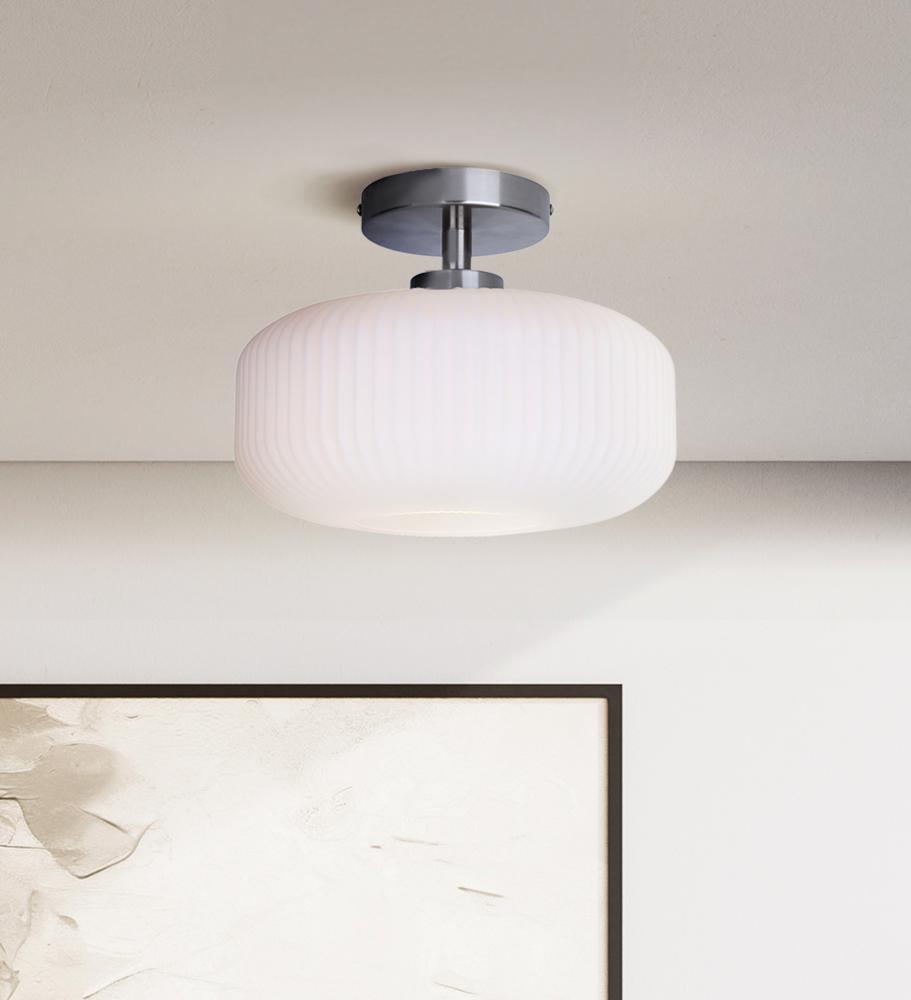 MALLORY, IFM1200A11BN, 1 Lt Flush Mount, Flat Opal Ribbed Glass, 60W Type A, 10.5inch W x 8.625inch H,Easy Connect Included