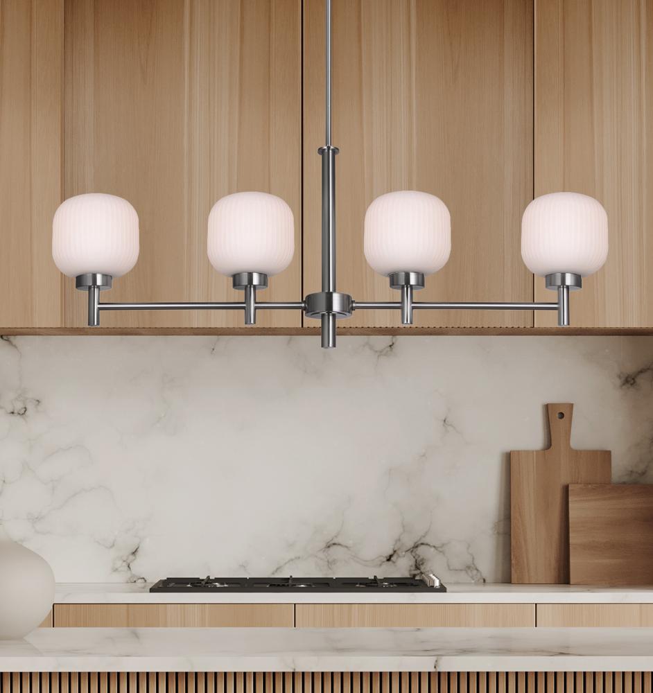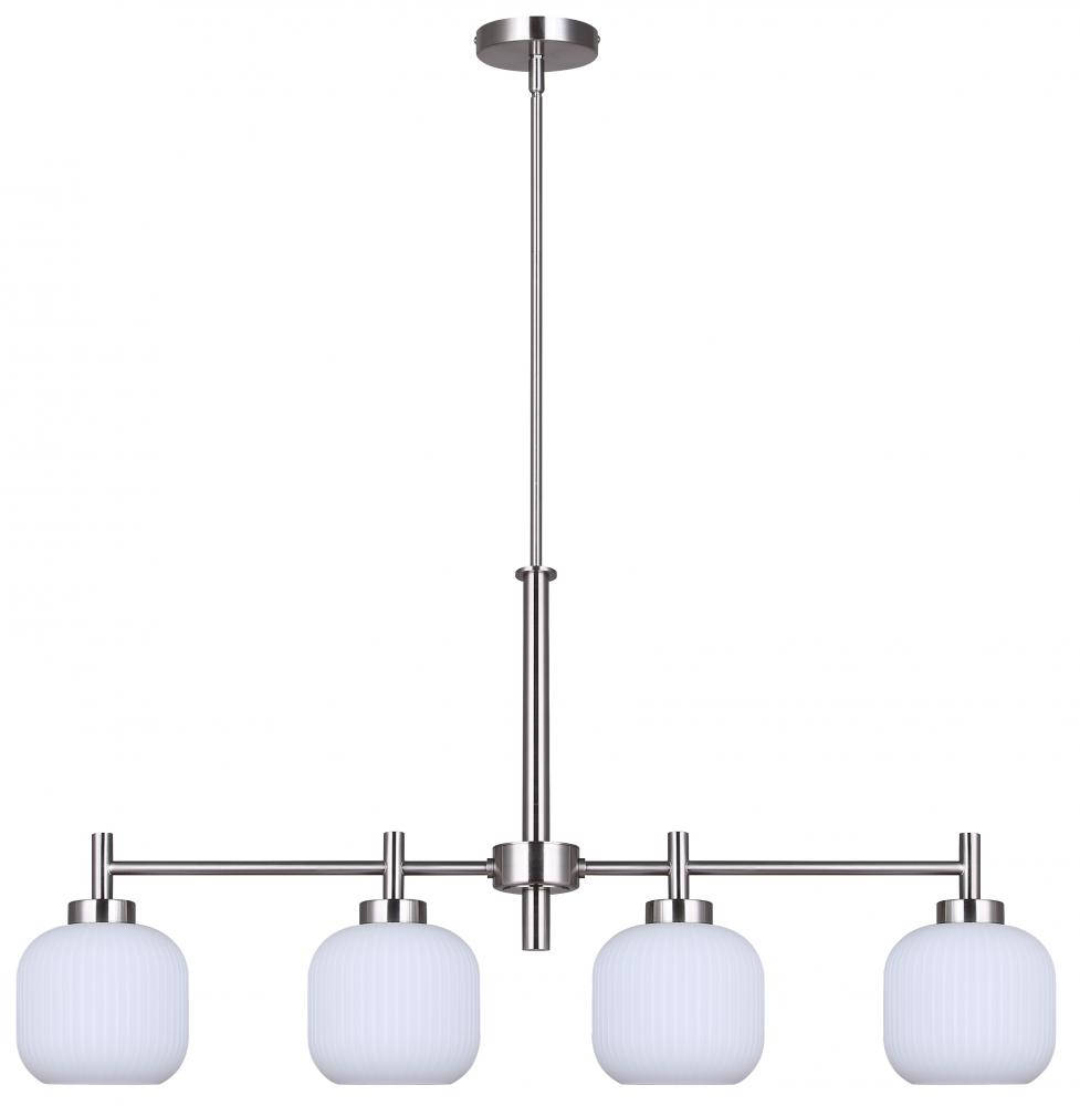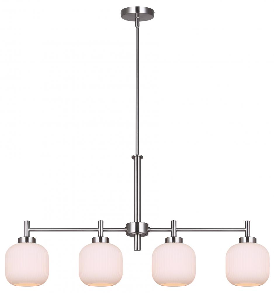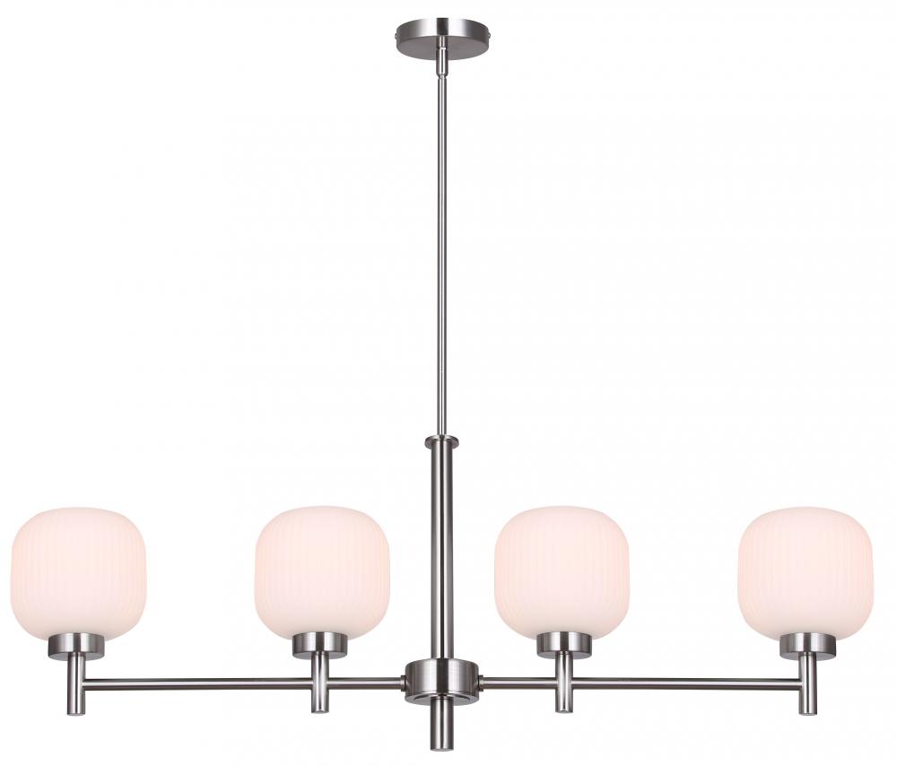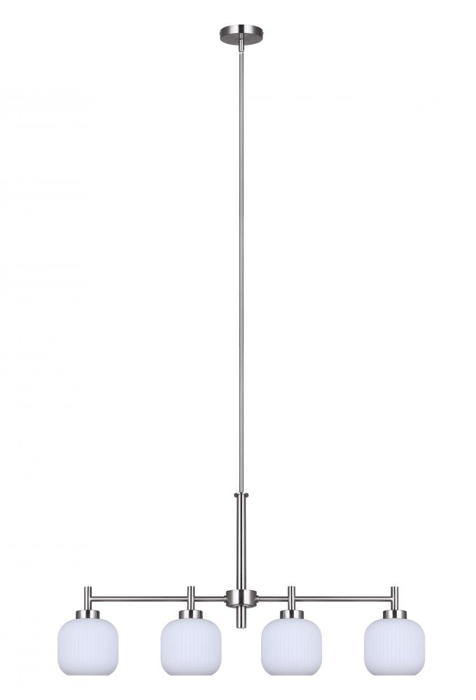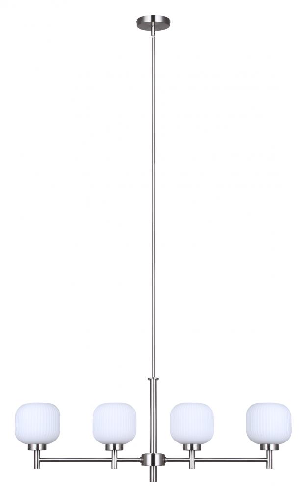 MALLORY, ICH1200A04BN, 4 Lt Rod Chandelier, Flat Opal Ribbed Glass, 60W Type A, 36.375inch W x 16.375 - 64.375inch H (Up) 20.75 - 68.75inch H (Down) x 5.875inch D