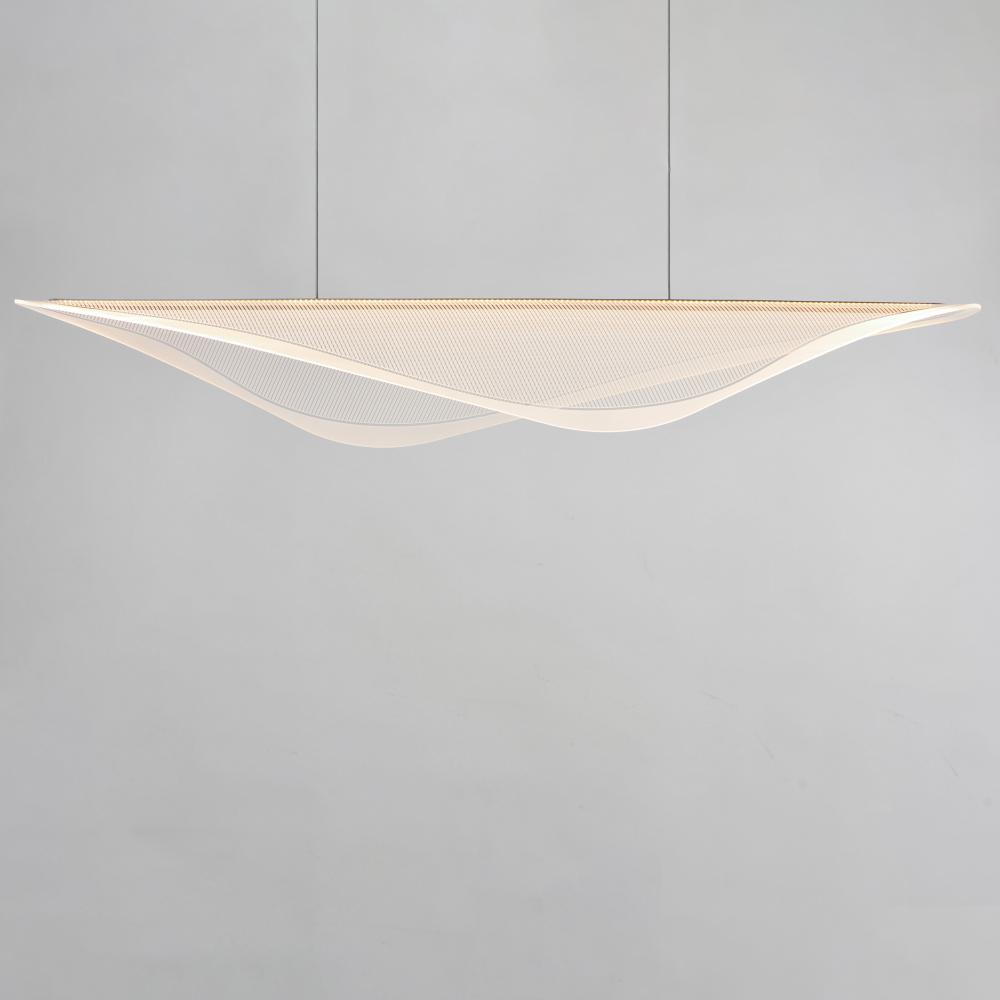 An undulating shape softly curls along its center to create an organic form constructed of a single panel of transparent acrylic. Further enhancing the form is the captivating effect of the frosted band around the borders and the patterned etching on the a
