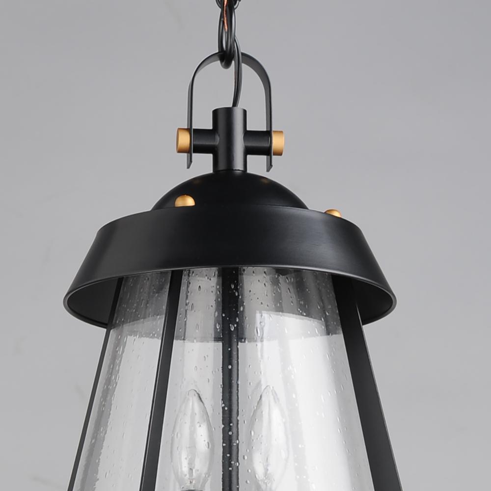 A nod to the nautical, the Marin outdoor sconces feature a two-tone frame of Black with Antique Brass details. Within the frame a pear shaped Clear Seeded glass shields a medium base lamp from the elements. Available in three sizes of sconce, two pendant c