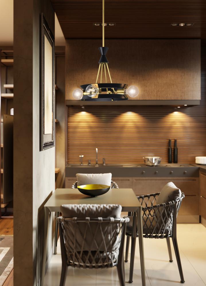 Eclectic, contemporary, unique, just a few words to describe the Marsden 60-7864 four light medium chandelier. The matte black finish is the perfect backdrop to the natural brass accents, blending form and function beautifully. A stunning chandelier over a