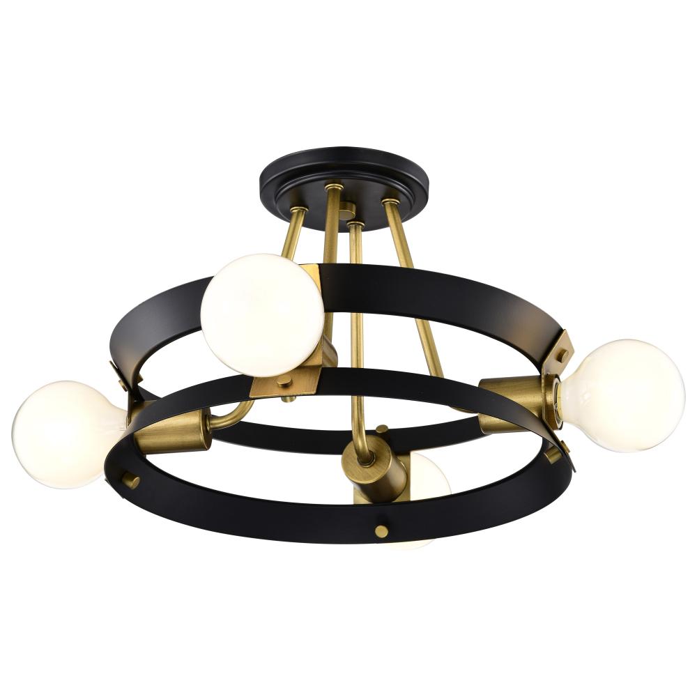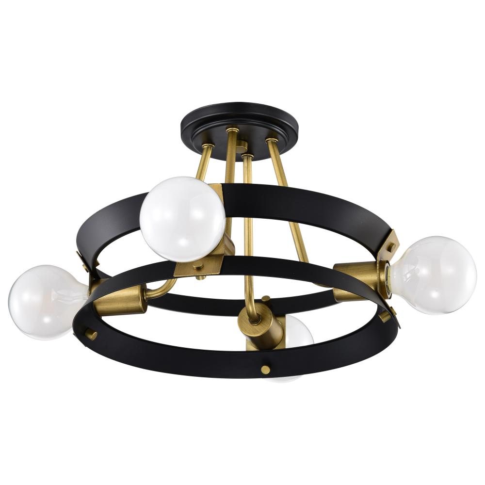 Eclectic, contemporary, unique, just a few words to describe the Marsden 60-7866 four light semi-flush mount. The matte black finish is the perfect backdrop to the natural brass accents, blending form and function beautifully. A fantastic semi-flush mount