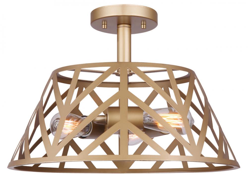 Maud 3 Light Semi Flush, Gold Finish