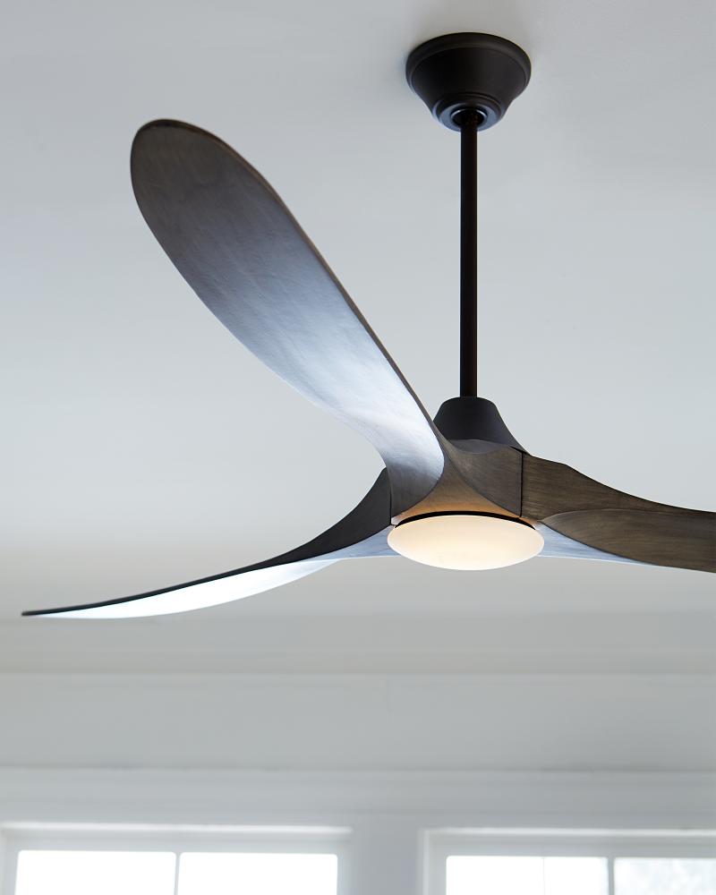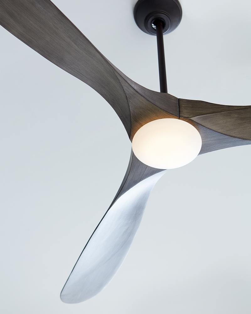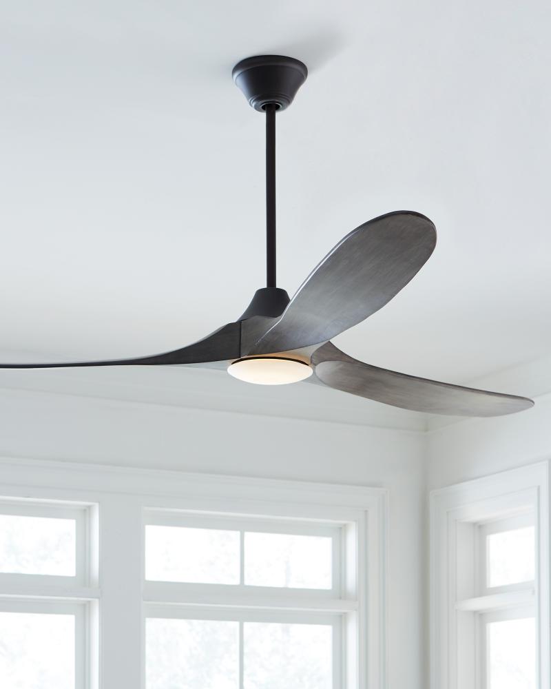The Maverick 70 LED in Aged Pewter features a 85.0 X 28.0 6 speed motor with a Thirteen degree blade pitch. The popular Maverick Max ceiling fan by is now available with an integrated LED light. This advanced LED technology is carefully designed and selected to consist of the highest quality LED chipsets for superior performance and reliability. With a sleek modern silhouette, a DC motor and super energy-efficiency, the Maverick LED ceiling fan from features softly rounded blades and elegantly simple housing. Maverick LED is available in 52, 60 and 70 inch blade sweep and a 3-blade design that delivers a distinct profile and incredible airflow for living rooms, great rooms or outdoor covered areas. It includes a hand-held remote with six speeds and reverse. All versions feature beautiful hand-carved, balsa wood blades. ENERGY STAR qualified. Maverick fans are damp-rated. A