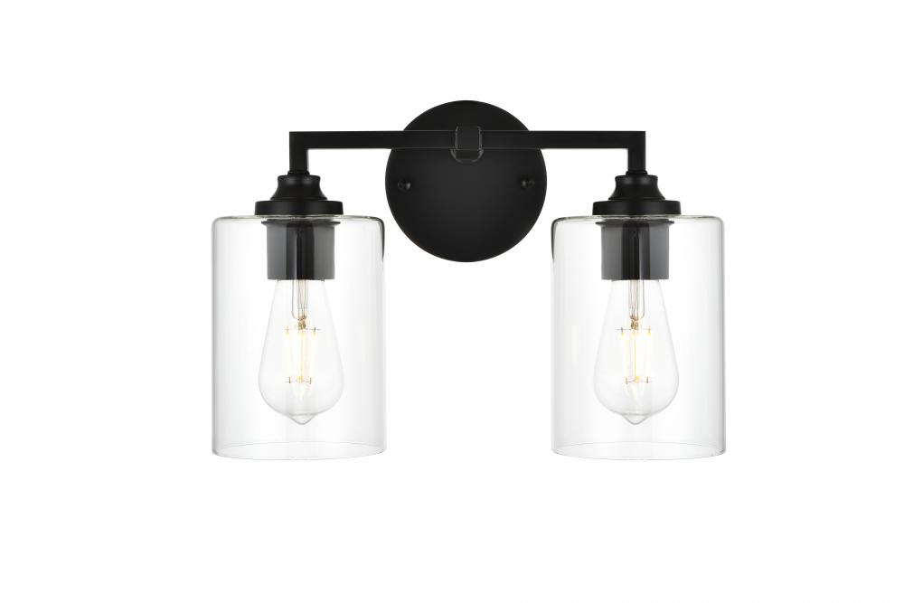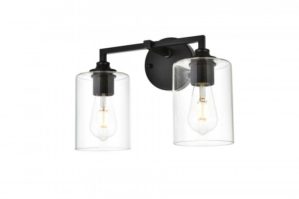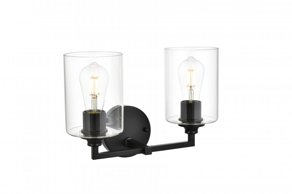 Elegant LD7315W14BLK - Mayson 2 light Black and Clear Bath Sconce