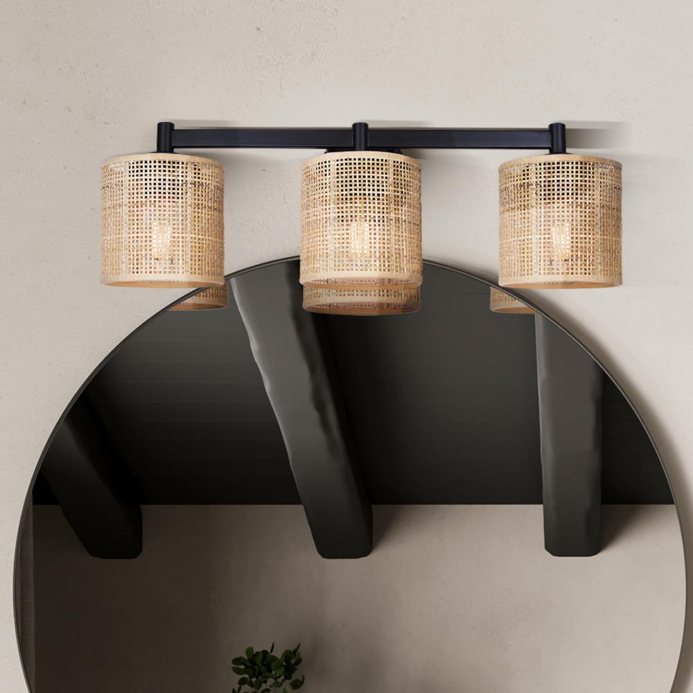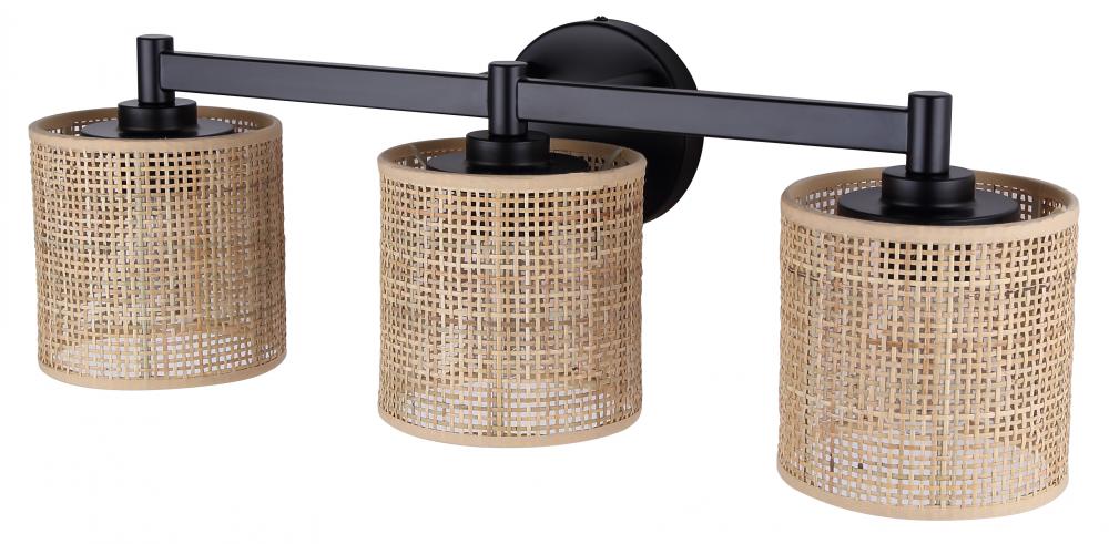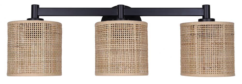 MEADOW, IVL1206A03BK, MBK Color, 3 Lt Vanity, Natural Rattan, 60W Type A, 25.25inch W x 9inch H x 7.875inch D, Easy Connect Included