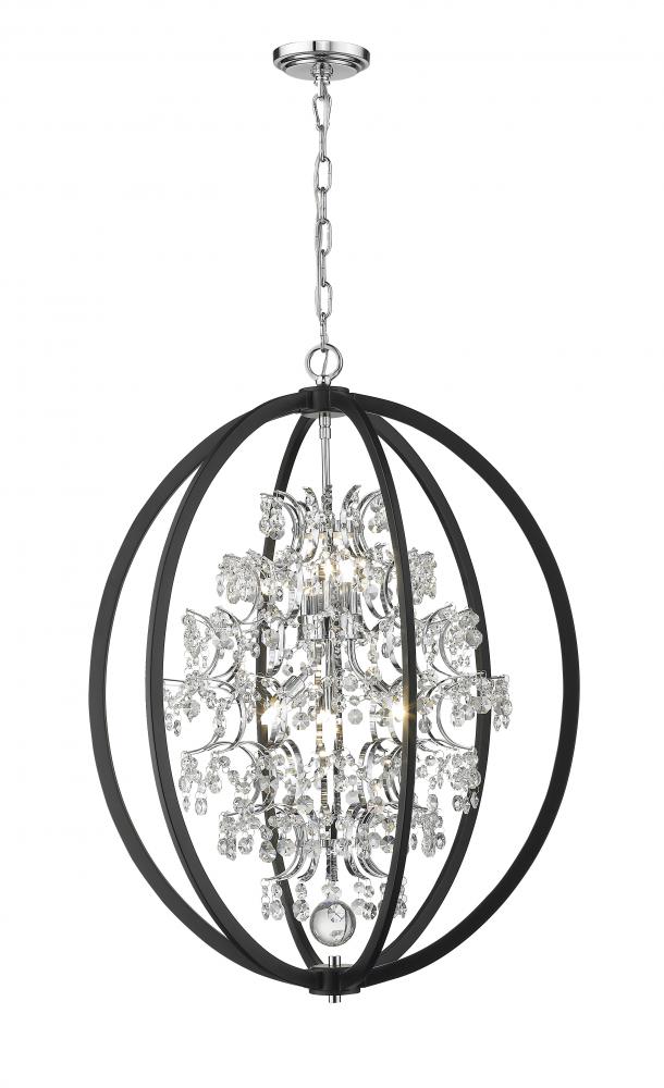 With all of the majesty of the high Renaissance in mind, the Medici is born. The outer black framework is reminiscent of Michelangelo's Vitruvian Man, while a myriad of delicate crystal strands cascade from the shimmering, scalloped core. You may choose to commission this work of art with luxurious gold or striking chrome as the centrepiece, each finish complementing the bold, oval outline. Available in three sizes to adorn villas from piccola to grande, the Medici is poised to become a modern masterpiece.