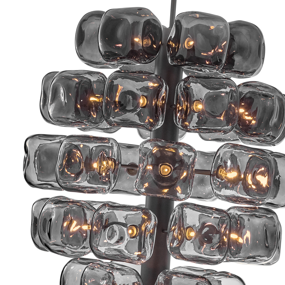 Inspired by the glamour of gemstone-adorned jewelry, Perriand’s varying hues are arranged in a striking ombre, transitioning from Smoke or Light Amber glass to clear glass. An intricate frame, rounded canopy, and slender stem in timeless finishes complete this contemporary art piece, making a striking modern statement in any setting.