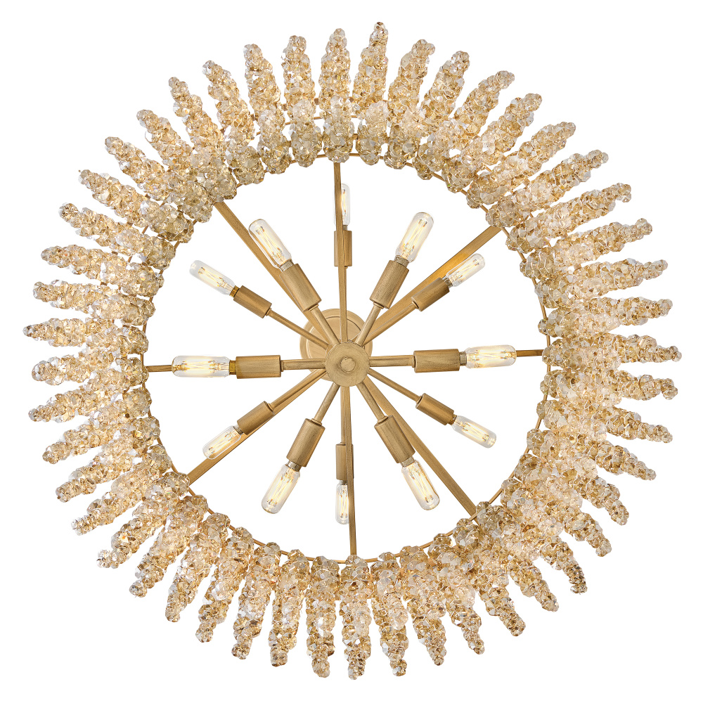 Dripping with glamour, Rubina’s magnificent shade is crafted from individually strung strands of sparkling crystal. A traditional tiered frame accentuates every beautiful refraction with its Burnished Gold finish.