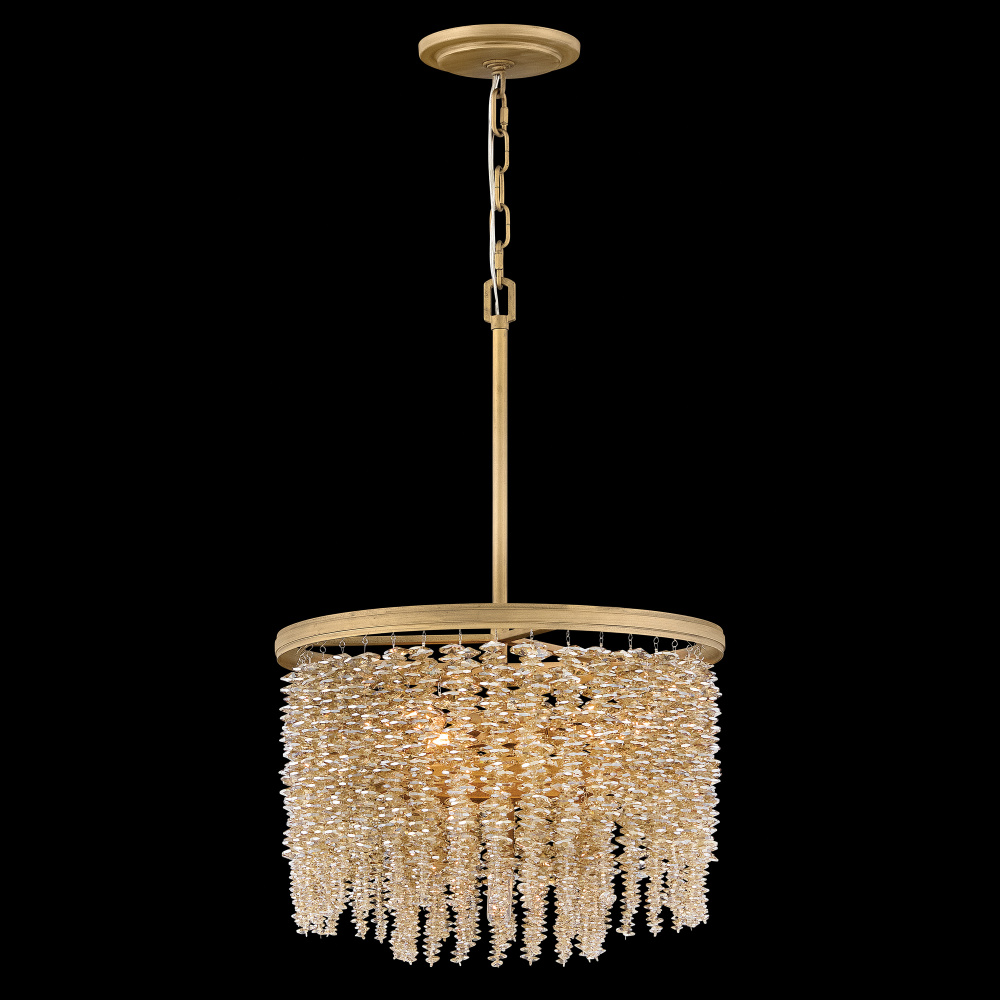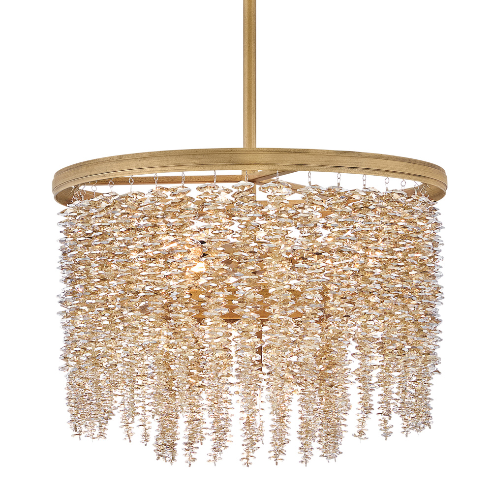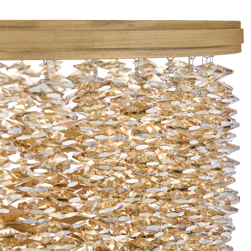 Dripping with glamour, Rubina’s magnificent shade is crafted from individually strung strands of sparkling crystal. A traditional tiered frame accentuates every beautiful refraction with its Burnished Gold finish.