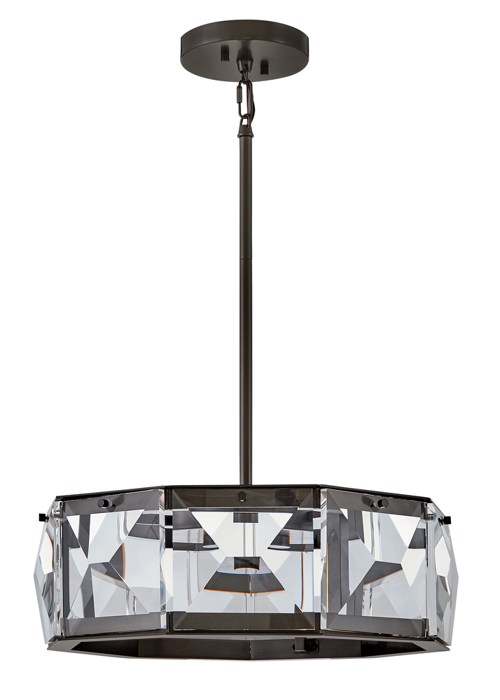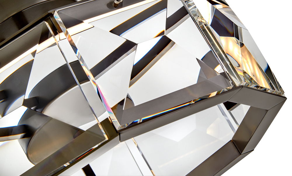 Jolie is a unique blend of sophistication, style, and technology. Integrated LEDs are sleekly concealed within gleaming Heritage Brass rings at the top and bottom of the design. Robust blocks of faceted crystal radiate with light, creating a transfixing silhouette while providing outstanding illumination.