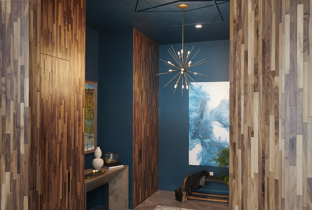 A seamless blend of vintage sophistication and contemporary clout, Tryst offers a striking mix of design elements. Hammered stems radiating from a spherical body shimmer as the light dances across the facets, creating a robust yet airy effect.