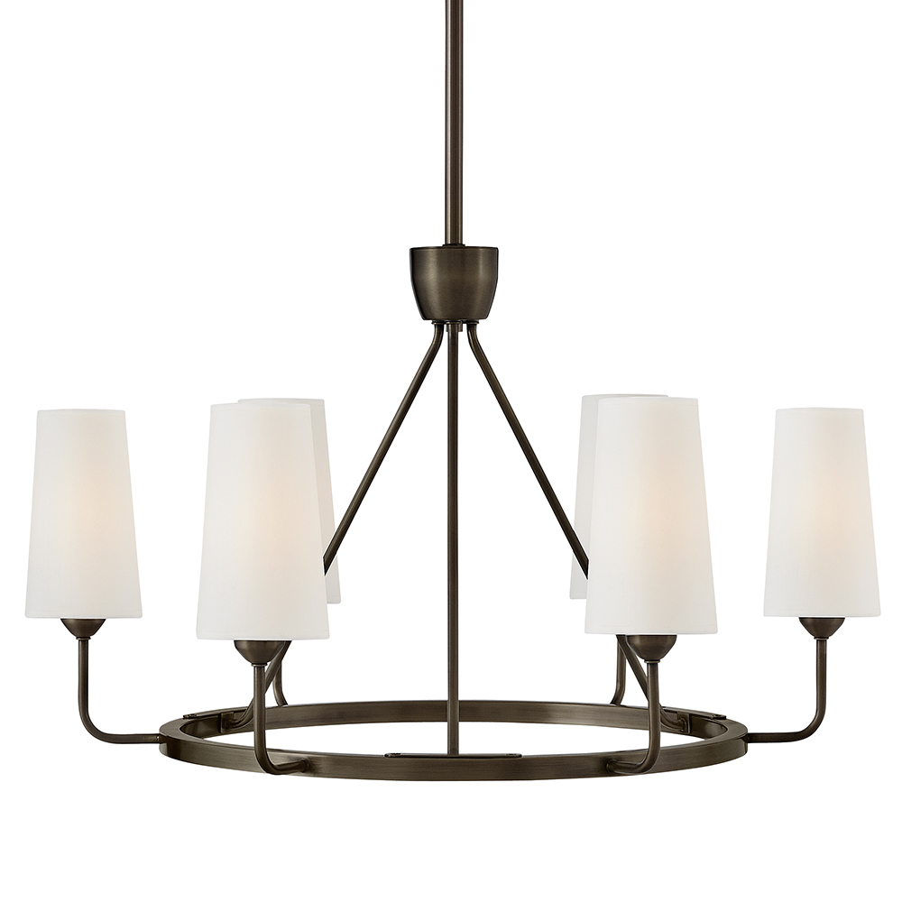 Lewis offers traditional charm paired with updated, transitional elements. Tall natural paper shades feature fine stitching detail against a Heritage Brass or Black Oxide finish to enhance timeless interiors.