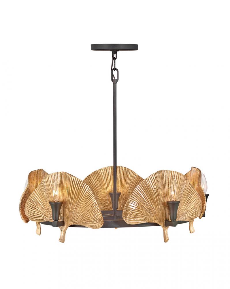 Paying homage to the ornamental Ginkgo tree, Cera’s intricate cast leaves help awaken an elegant decor, while its Bronze finish against Cleopatra Gold blossoms chic allure throughout a space.