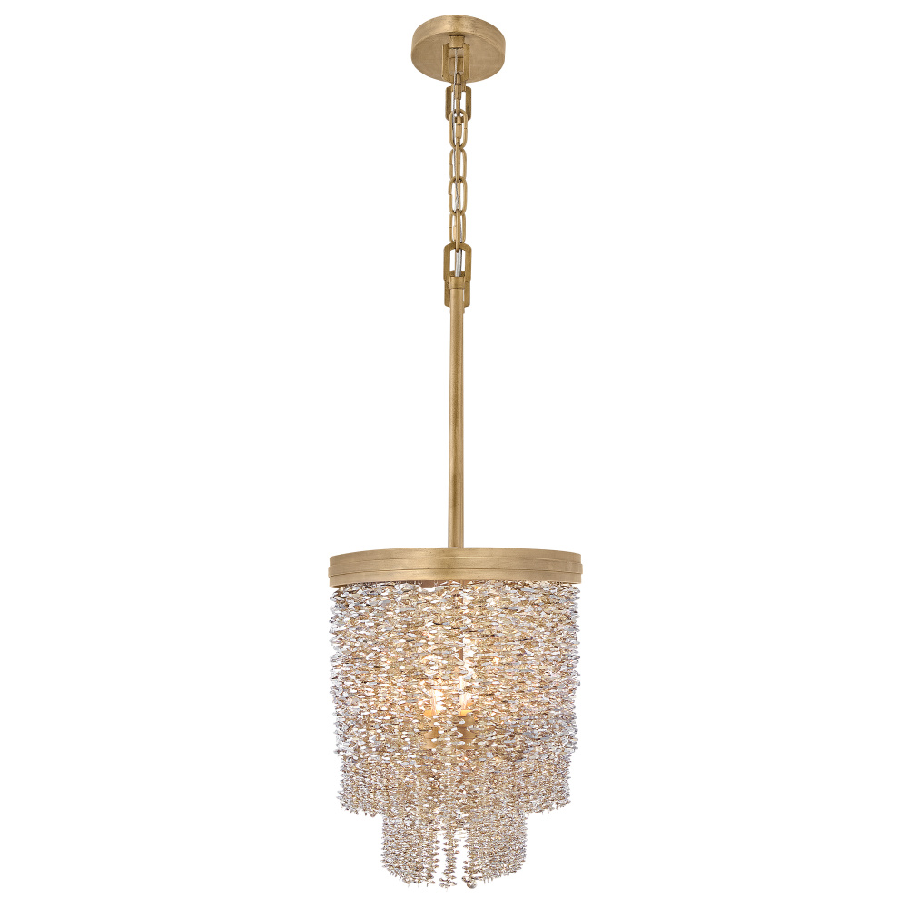 Dripping with glamour, Rubina’s magnificent shade is crafted from individually strung strands of sparkling crystal. A traditional tiered frame accentuates every beautiful refraction with its Burnished Gold finish.
