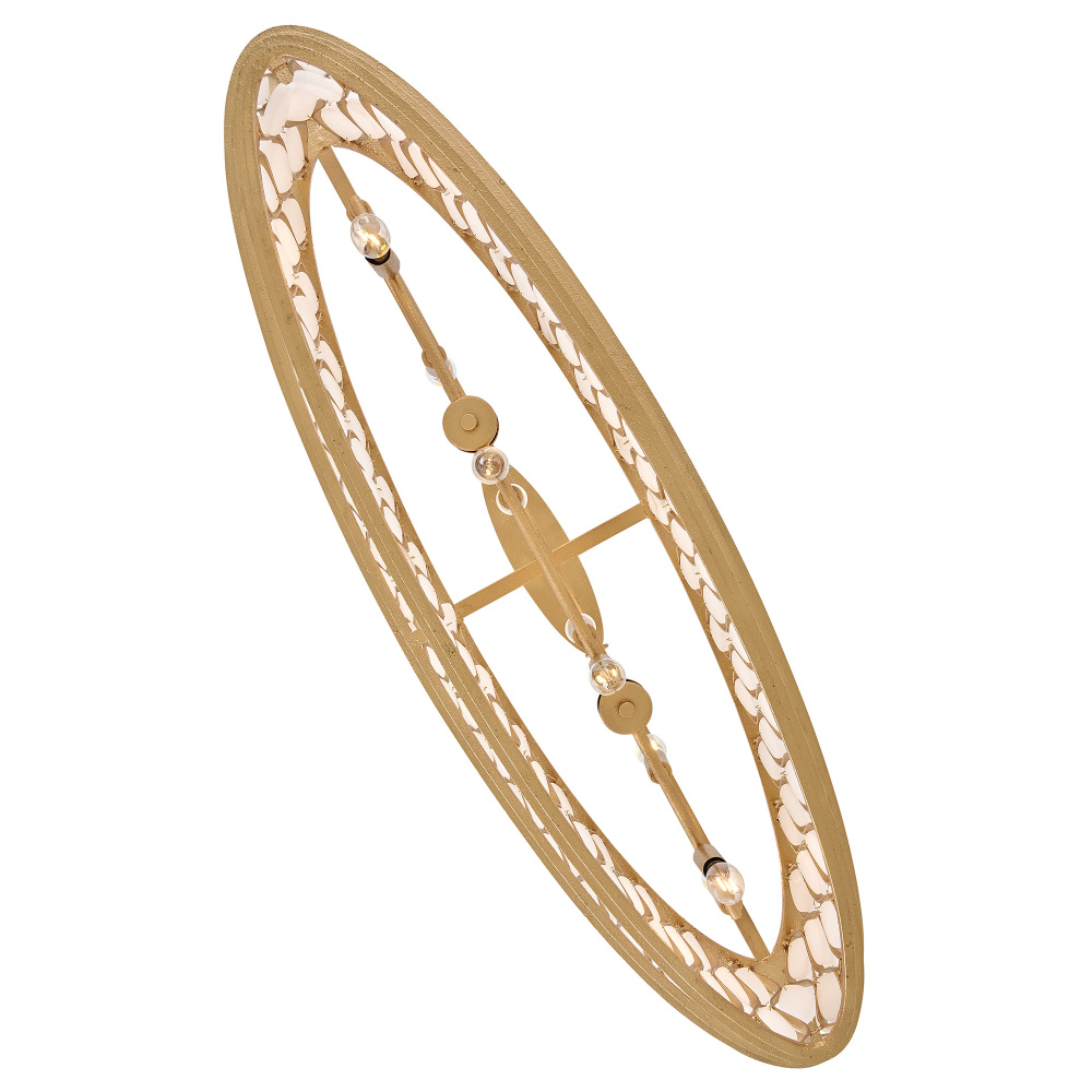 Opulently adorned with natural alabaster stones held within a traditional latticework shade, Estie brings organic elegance to any decor aesthetic. Intricately curved metalwork complements the frame, chain, and canopy in a textured, hand-painted Piastra Gold finish