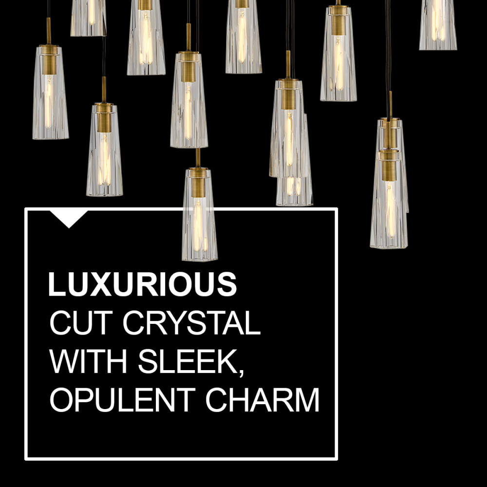 Dramatic and sleek, Cosette exudes opulent charm with an elongated silhouette and luxurious cut crystal. Two luxurious shade options, smokey gray or clear, beautifully cast a rich, multi-faceted light pattern. Adjustable cords designed for easy installation allow you to arrange your fixture to match your space and style.