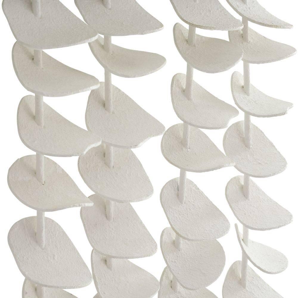 Echoing the design language of our Melt entry table, the Melt wall decor's decorative smoke wood armature supports a cascade of hand-formed petals in white gesso-plated iron, strung in a series of vertical rods. A study in material contrast and diverse movement, this compelling piece suits a wide range of spaces. Finish will vary.