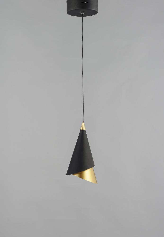 This unique collection features pendants constructed of two separate pieces inserted into each other. The Matte Black outer shade is bevel cut in an opposing direction of the inner Metallic Gold shade. The inner shade can rotate to give a different look an