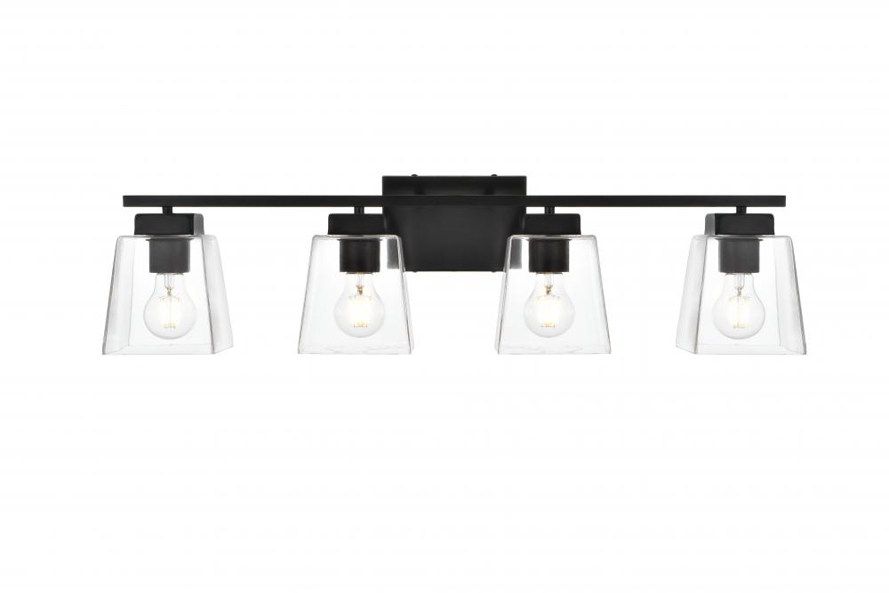 Elegant LD7312W32BLK - Merrick 4 light Black and Clear Bath Sconce