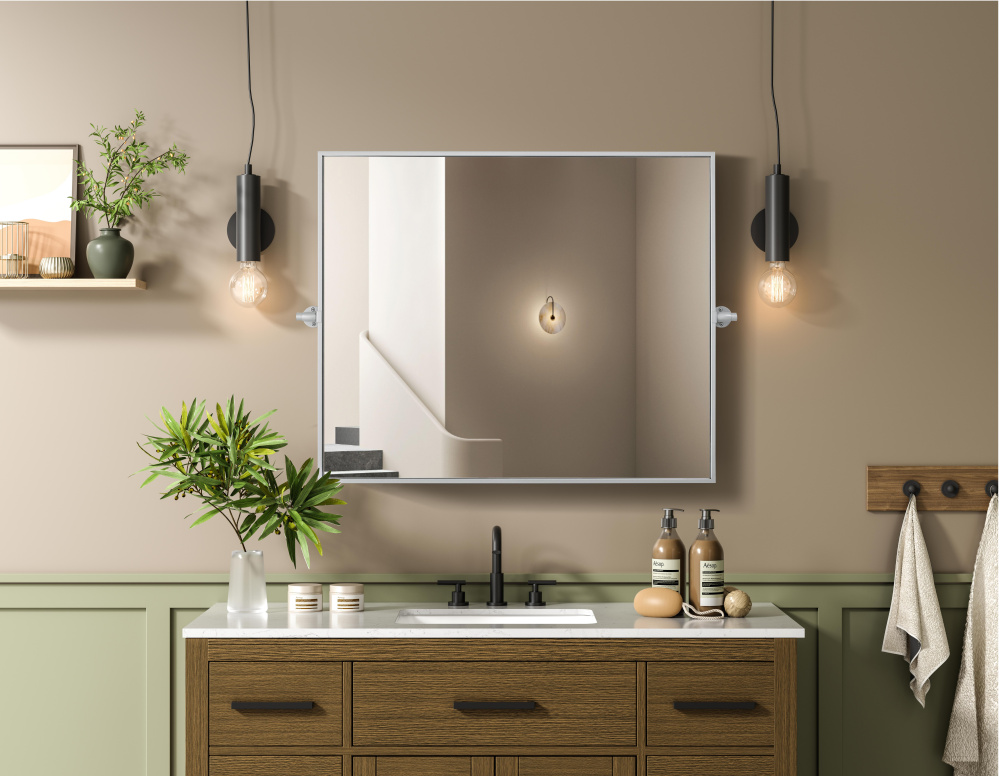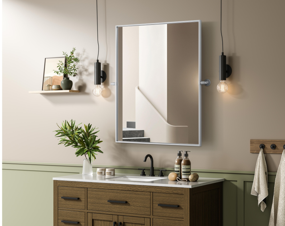 Whether in the bathroom, bedroom, or office, this mirror's versatile pivot feature allows you to find the ideal reflection every time.