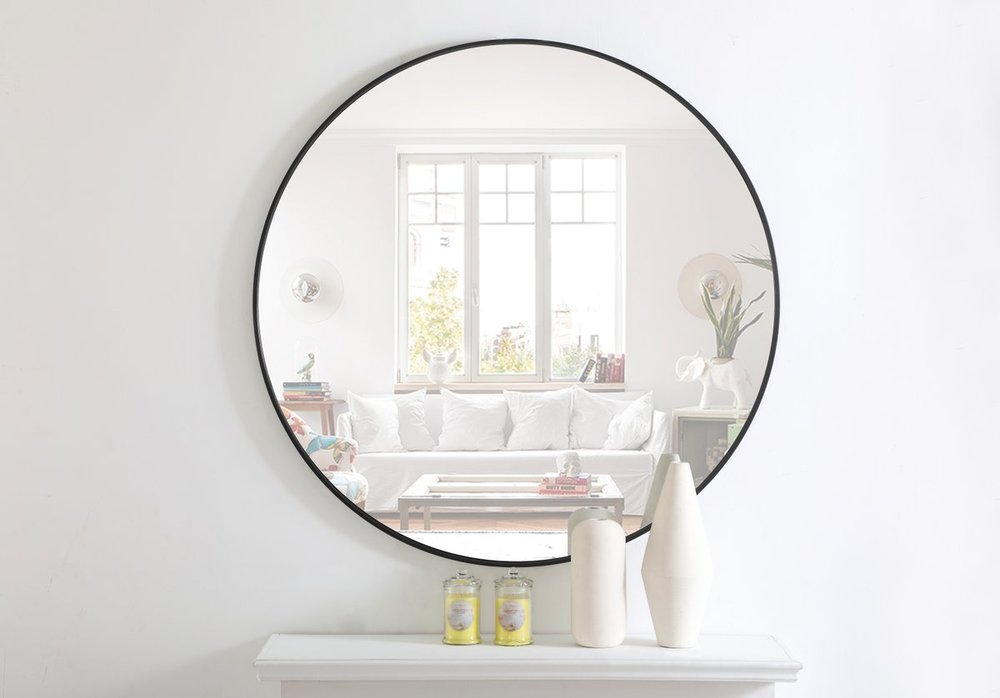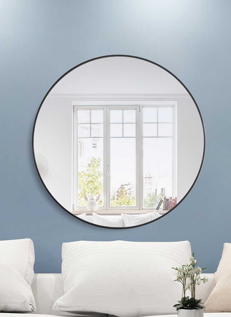 Enhance the appeal of your home or office with this black contemporary mirror featuring a thin rounded metal edges in a deep profile, reflecting a minimalist's design and trendy styling. To ensure your home safety, we use a metal hanger bar that are securely welded to the back of the metal frame. We recommend using suitable heavy duty picture/mirror hooks, selecting the best type of fixing for the particular wall you wish to hang the mirror on, using the appropriate rawl plug if required.