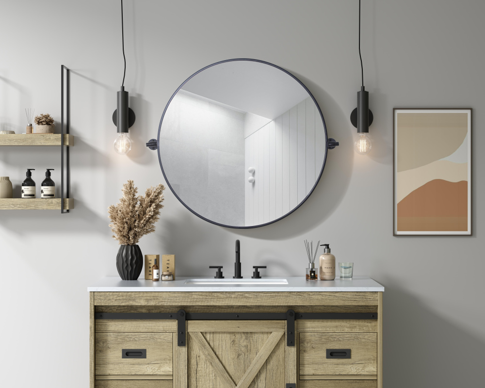 Elevate your space with the perfect blend of form and function—this sleek pivot mirror is designed to move with you. Crafted from durable iron with a sturdy MDF backing, it offers both stability and style. The 8-degree adjustable pivot allows for a customized viewing angle, making it ideal for bathrooms, bedrooms, and beyond. Finished with a hand-painted touch, this mirror is available in three elegant shades: black, silver, and brass, effortlessly complementing a range of interior aesthetics. Its modern round silhouette brings a timeless, minimalist appeal, making it a versatile piece for any room—whether placed in a living room, office, or entryway. Designed for effortless installation, this mirror comes with all necessary mounting brackets and screws, so you can upgrade your space in minutes. Whether you're seeking a functional bathroom essential or a sophisticated statement piece, this adjustable pivot mirror delivers in both style and practical