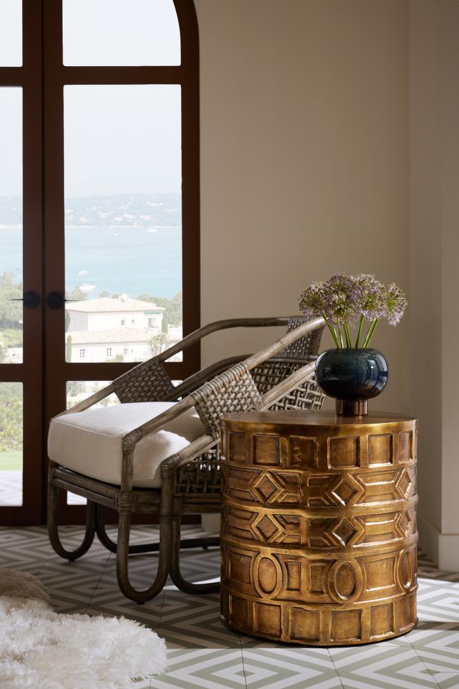 This sophisticated accent table features a unique textured aluminum metal with antique brass finish. The Millenia Table’s lustrous finish beautifully complements the art deco/orientalist detailing, giving it a feeling of both the past and the future. Millenia is to be used in the living room as an accent side table or as a stylish bedside companion.