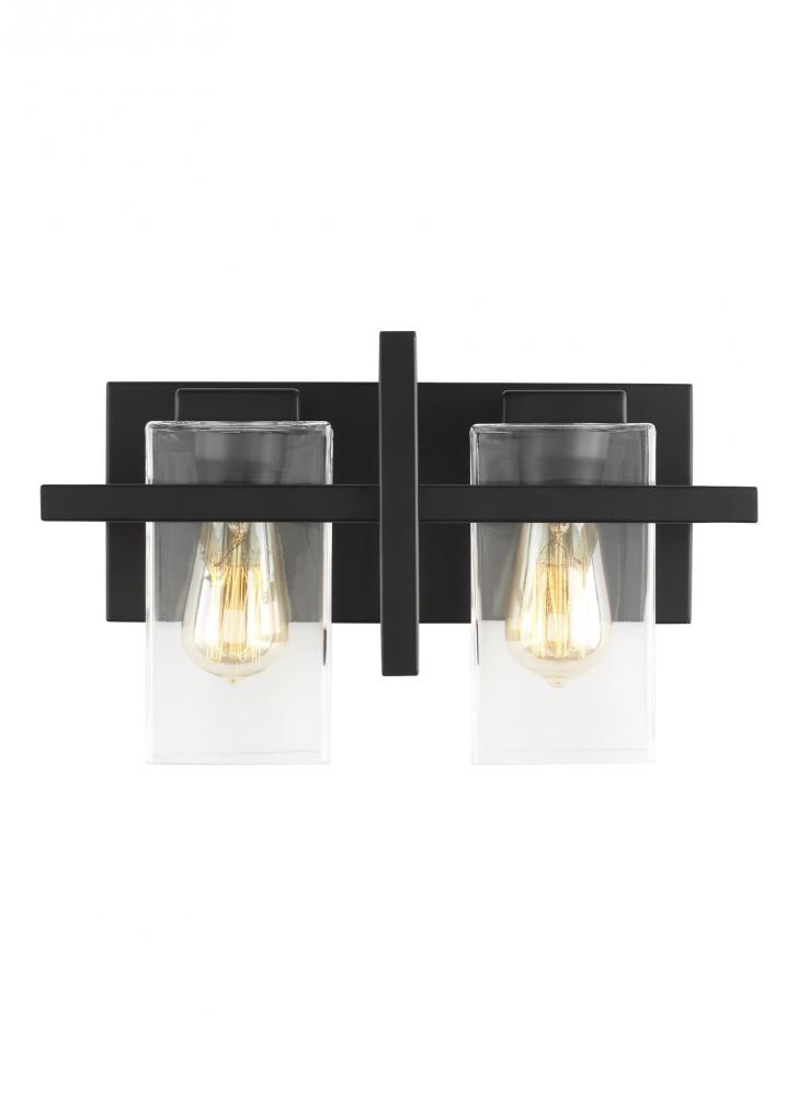 The Mitte two light vanity fixture in midnight black provides abundant light for your bath vanity, while adding a layer of today's style to your interior design.