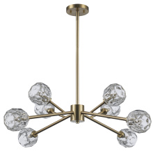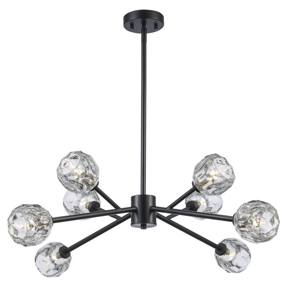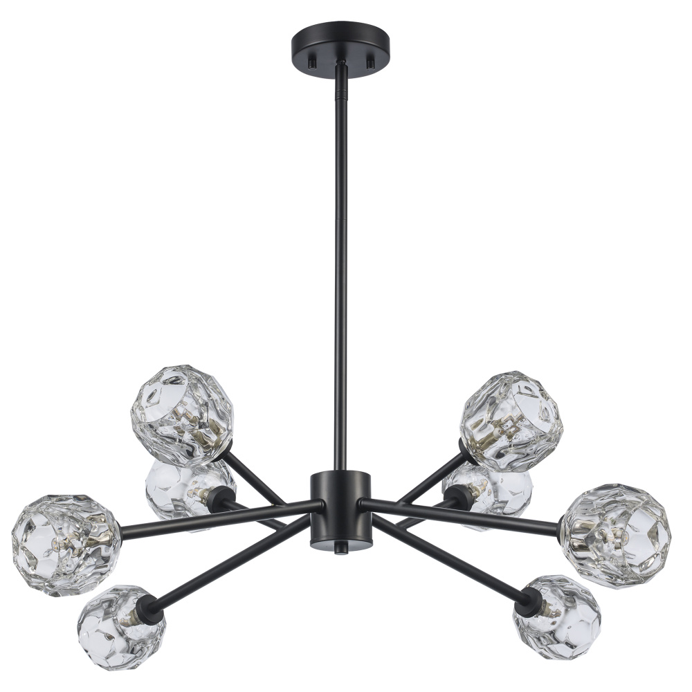 The enchanting Monet chandelier is designed to capture and reflect light as rippling water reflects sunshine. Each faceted glass blossom casts a soothing shimmer over admirers below. Monet's dynamic shape is highlighted by his finish options in glistening chrome, shadowy black or decadent gold. When you select the mastery of Monet, prepare to be transported to a bridge over a serene garden pond as the setting sun dances across the waterlilies.