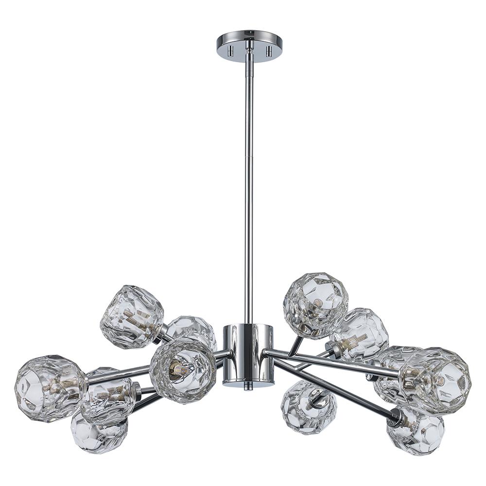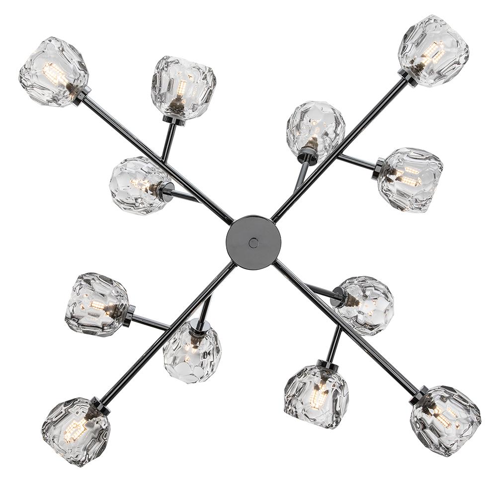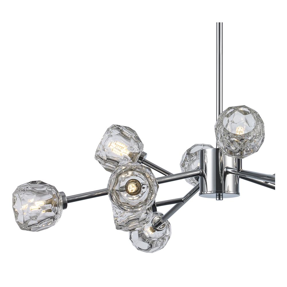 The enchanting Monet chandelier is designed to capture and reflect light as rippling water reflects sunshine. Each faceted glass blossom casts a soothing shimmer over admirers below. Monet's dynamic shape is highlighted by his finish options in glistening chrome, shadowy black or decadent gold. When you select the mastery of Monet, prepare to be transported to a bridge over a serene garden pond as the setting sun dances across the waterlilies.